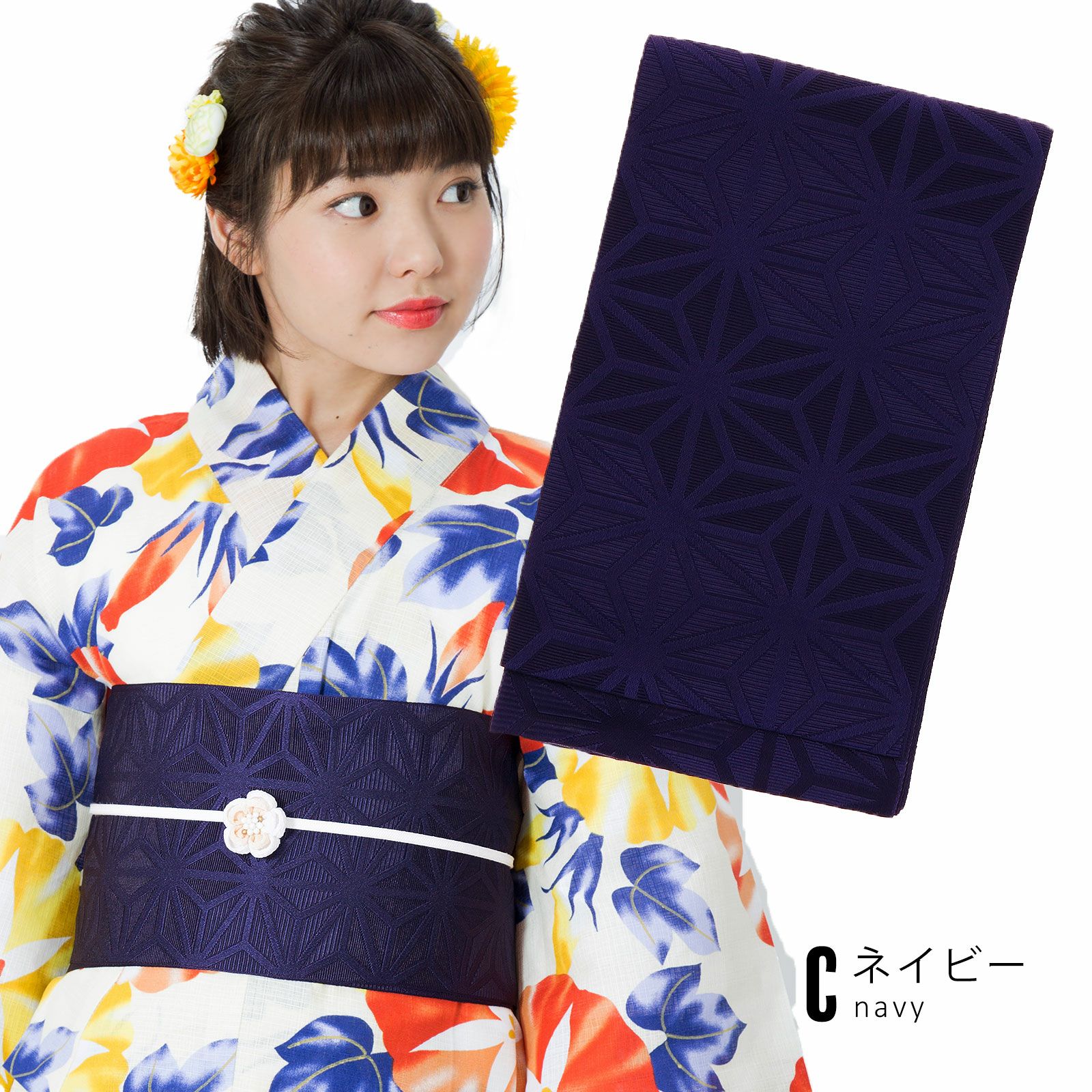 Cネイビー…やや明るめの紺色の帯です。引き締め感があり、かつ暗くなりすぎない万能帯です。