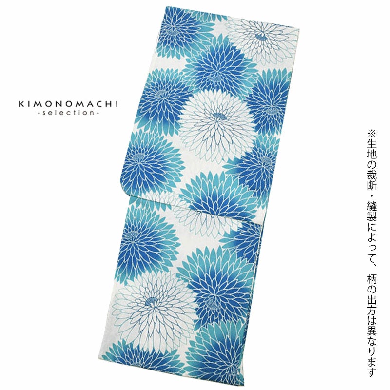 浴衣 セット レディース 大人 浴衣セット 浴衣3点セット(浴衣+帯+下駄) 「ブルー丸菊+兵児帯ホワイト」 花火大会 夏祭り 女性用 女性浴衣 ゆかた 【メール便不可】