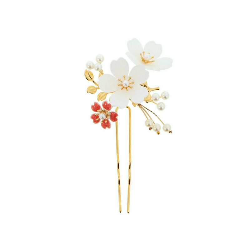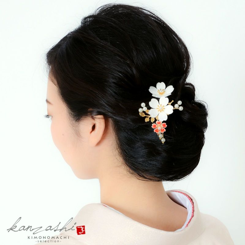 (卒業式応援最大70%OFF 2/5迄)髪飾り かんざし 「花月ピン 紅桜 F16-346W」 簪 花月簪 花かんざし 日本髪 和装 着物 【メール便不可】<H>