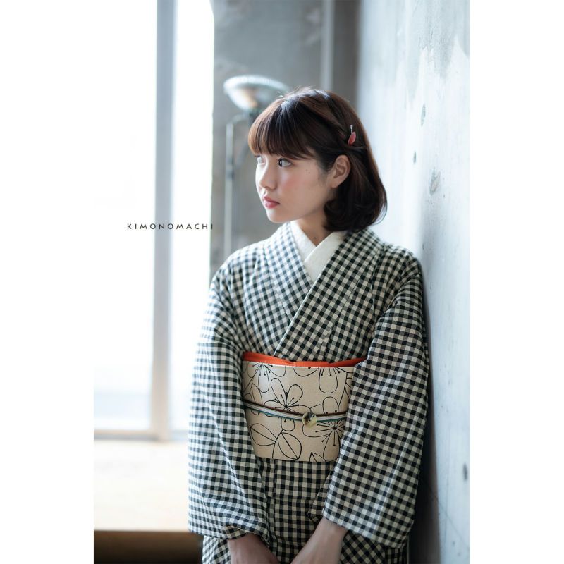 【色柄】ざっくりとした風合いのベージュの地。ペンで描かれたかのような、黒い線のお花の柄。シンプルで合わせやすく、かわいらしさのある帯です。綿ですのでしなやかで滑りにくく、お太鼓以外の変わり結びにも◎気軽に楽しんでいただける帯です。