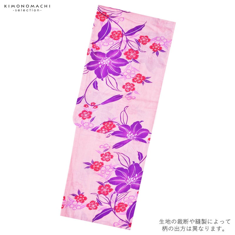 お祭り、花火大会、盆踊りに!プチプラなのにかわいい!涼し気な女性浴衣単品 大人かわいいフリーサイズ 【Prices down2】浴衣 レディース 単品 「ピンク色地 百合、撫子」 フリーサイズ レトロ モダン 大人柄 女性浴衣単品 女浴衣 ゆかた yukata 【メール便不可】ss2512ykl25