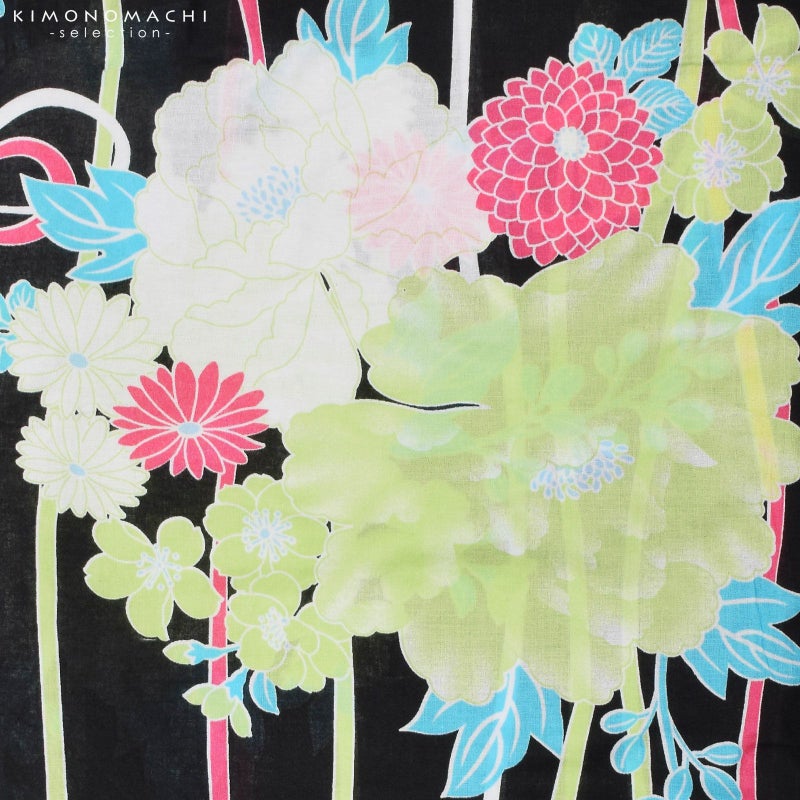 プチプラなのにこだわりデザインでカワイイ!お仕立て上がり女性浴衣単品です。夏祭り、盆踊り、花火大会、夏フェスなどの夏のイベントに。フリーサイズです(適応身長約155~165cm)。平織り生地の浴衣です。
