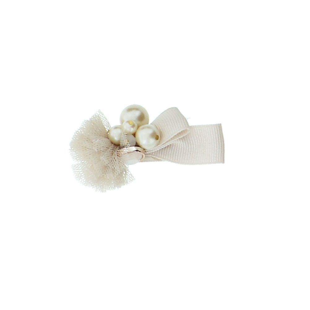 リボンにチュールとパールビーズをあしらった髪飾りです。