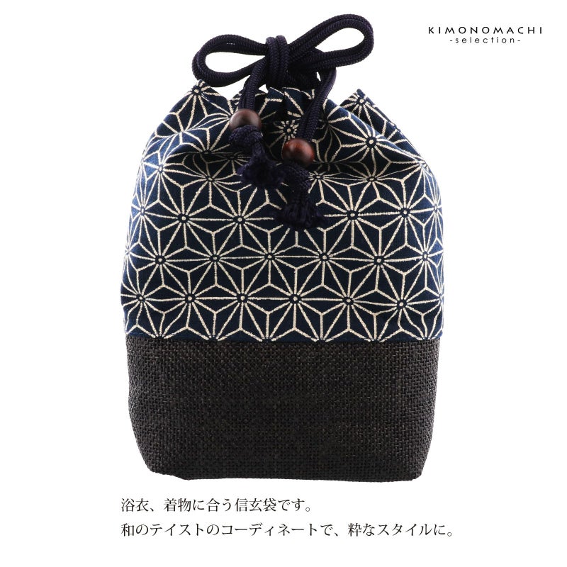 浴衣・甚平・作務衣・着物など和装でのお出かけに 底付きでたっぷり入って安心の日本製 粋な和柄の信玄袋 信玄袋 メンズ「家紋・子持ち吉原繋ぎ・麻の葉・龍・風神雷神・鳥獣戯画・青海波 全10柄」日本製 底付き巾着袋 巾着型バッグ 男性用 和装 ポーチ かばん 【メール便不可】