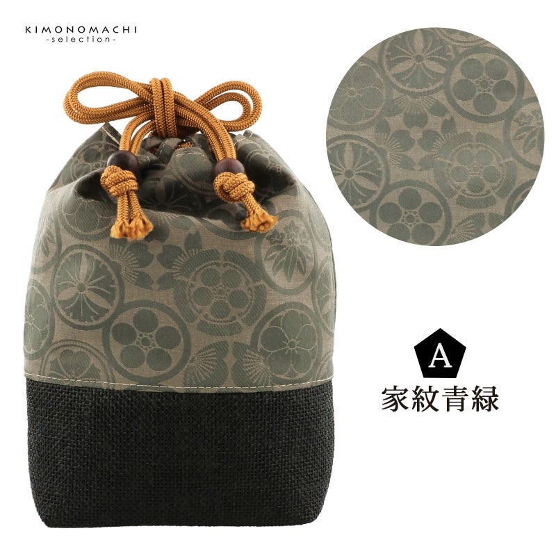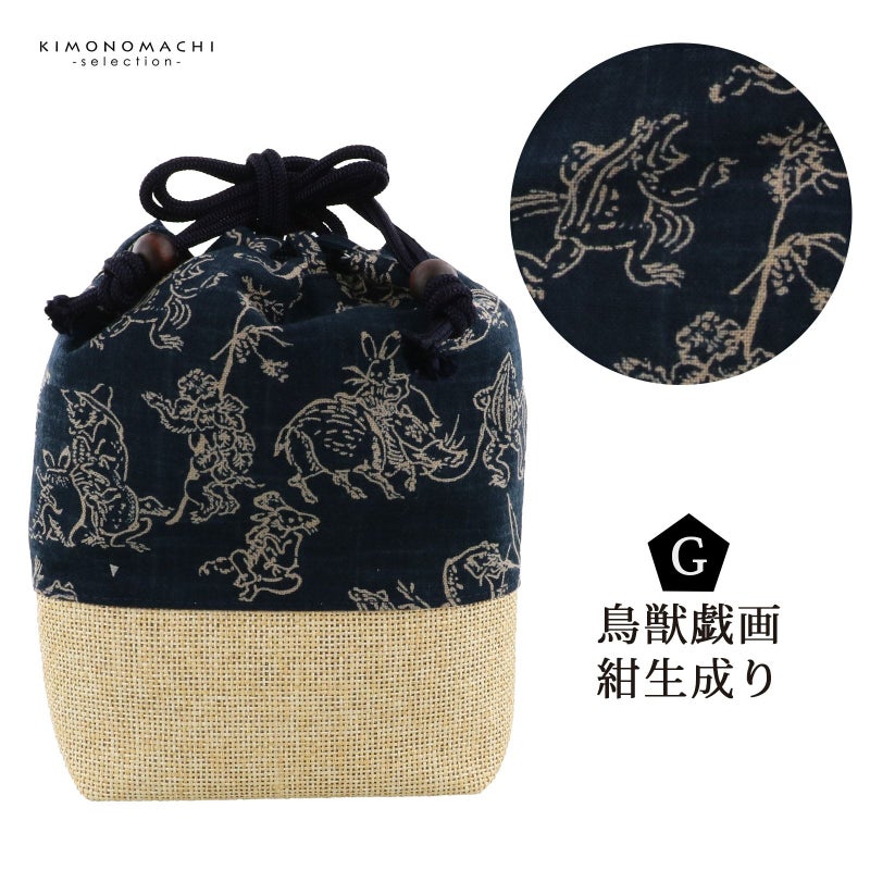 4. 信玄袋 メンズ「家紋・子持ち吉原繋ぎ・麻の葉・龍・風神雷神・鳥獣戯画・青海波 全10柄」日本製 底付き巾着袋 巾着型バッグ 男性用 和装 ポーチ かばん 【メール便不可】