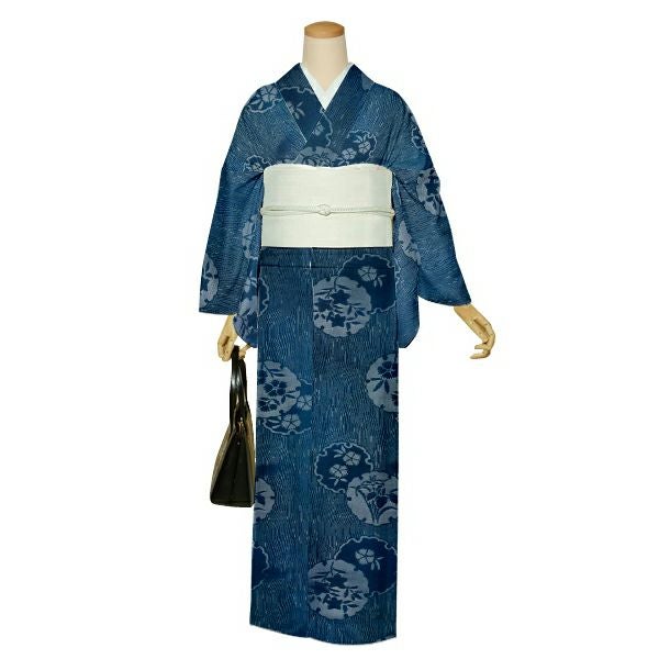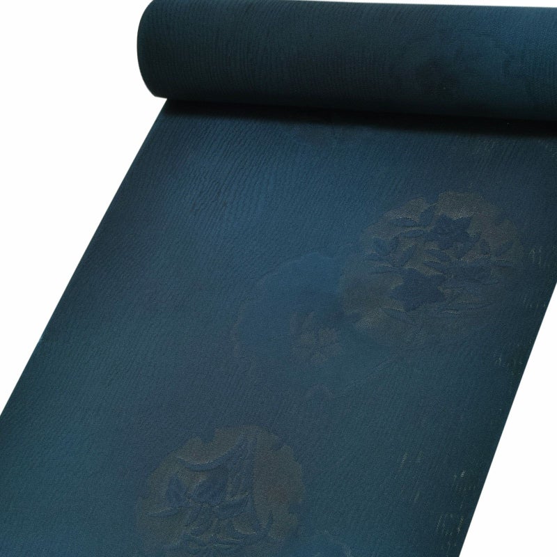 夏の正絹小紋 反物  「紋紗 藍色 雪輪に撫子」着尺 日本製 紗紬 夏着物 未仕立て