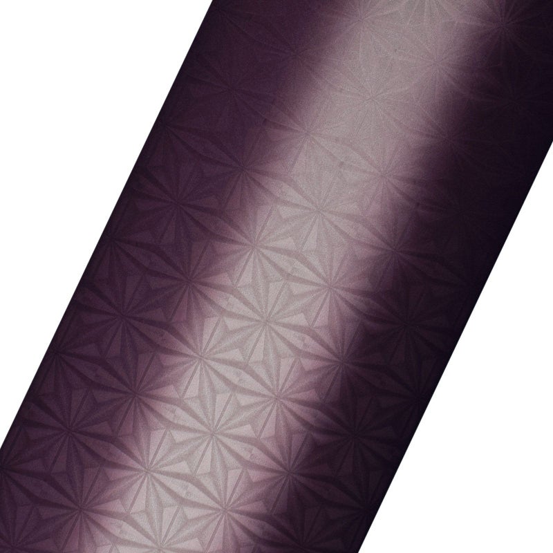 麻の葉の地紋の生地。深い紫色~グレーベージュの縦ぼかしに染められています。