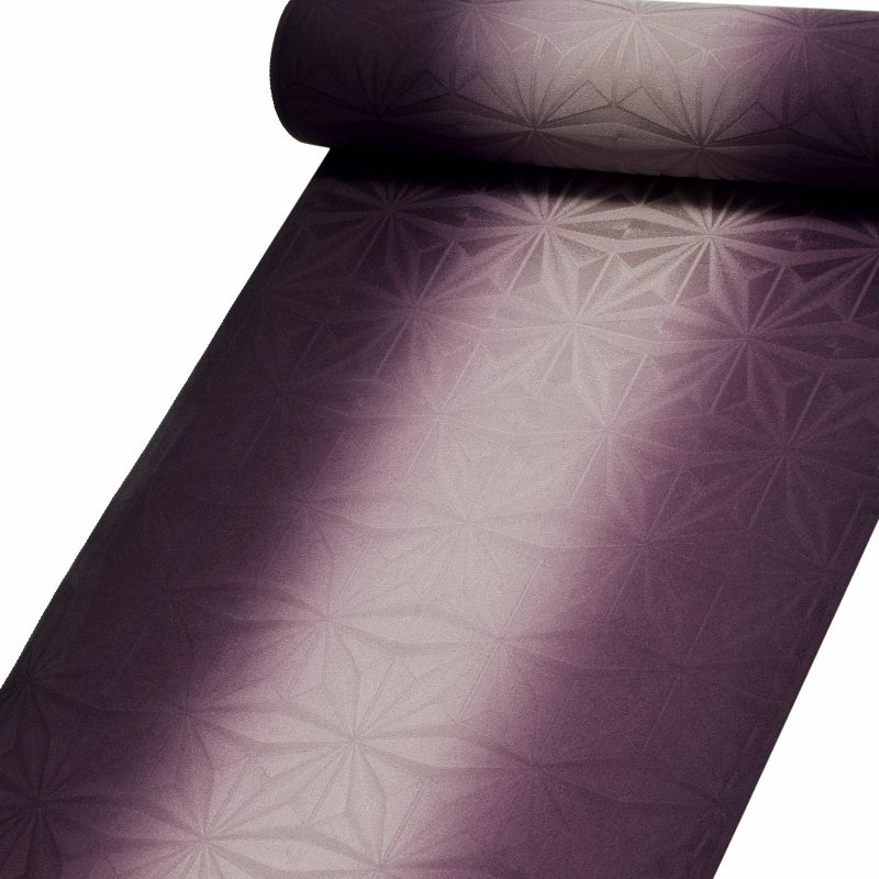 正絹 小紋 反物 着物「濃紫 縦ぼかし 麻の葉」日本製 丹後ちりめん 未仕立て 小紋 単衣 袷