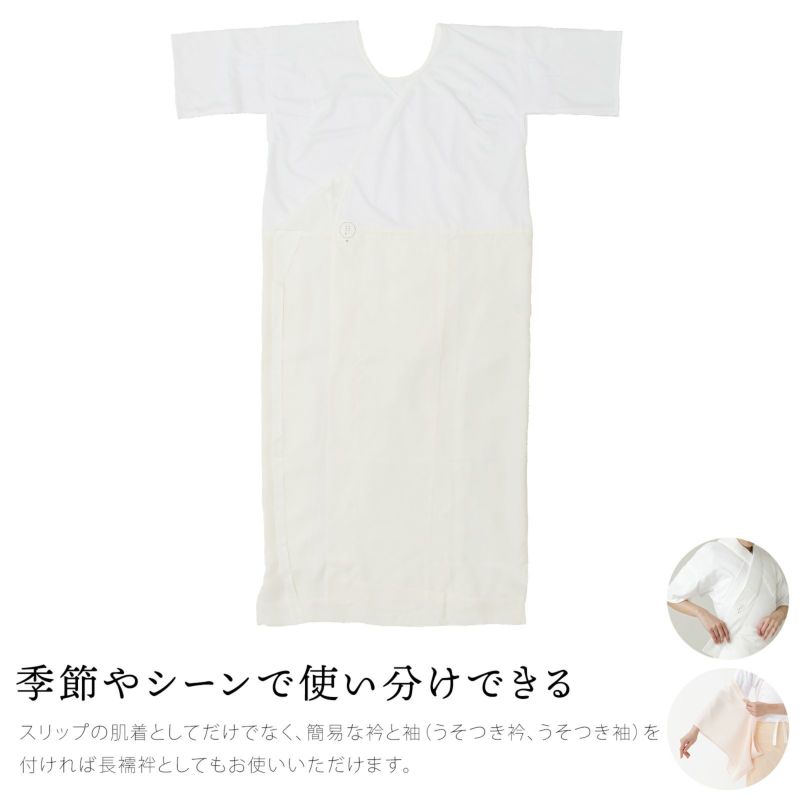 このシンプルな問題を、満点スリップは「肌着と長襦袢を一つにする」という方法で解決しました。