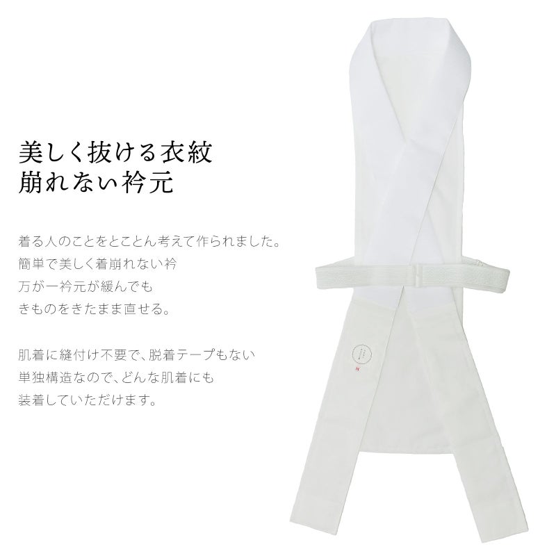 きれいに抜いた衿をしっかりキープ。襦袢なしでも、きものが着られます。