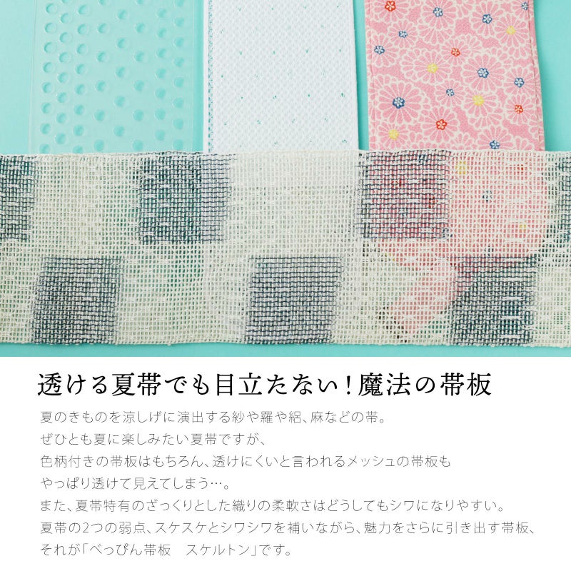 夏きものを、もっともっと楽しくする、縁の下の力持ち、それが「べっぴん帯板 スケルトン」です。