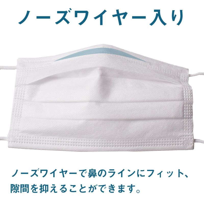 使い捨てで衛生的、たっぷり使えるマスク。1箱50枚入りです。