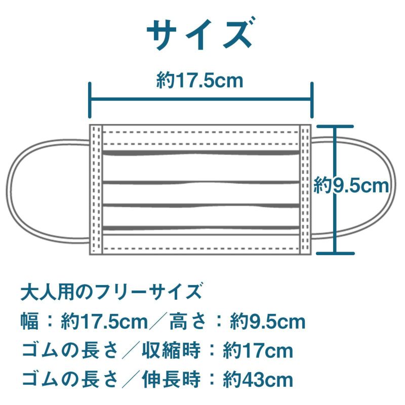 マスク本体:約175mm×95mm(ゴム除く)