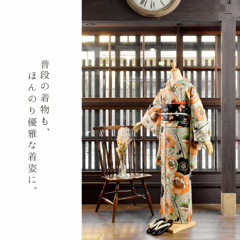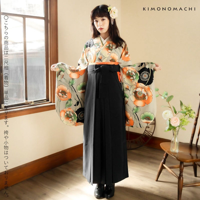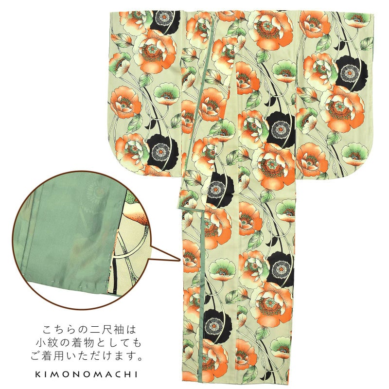 京都きもの町オリジナルブランド「KIMONOMACHI」の二尺袖着物単品です。袴と合わせて卒業式などの袴スタイルに。また身丈が通常の着物と同様の長さがございますので、袴無しで、袖が長めなアンティーク風着物としてもお召しいただけます。