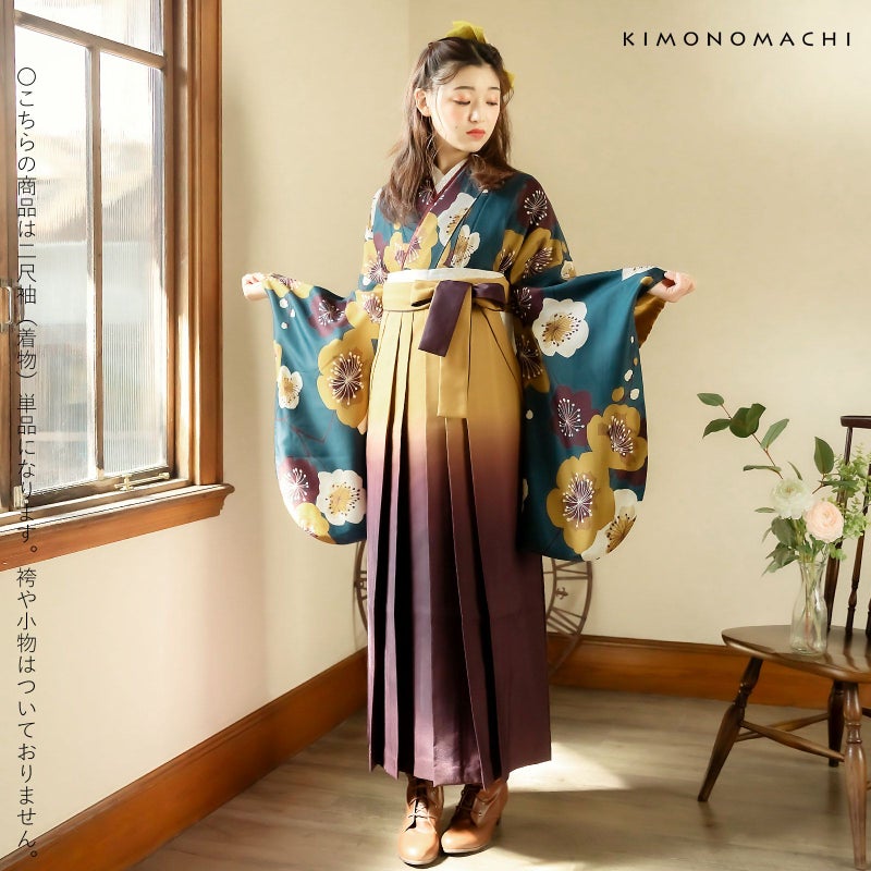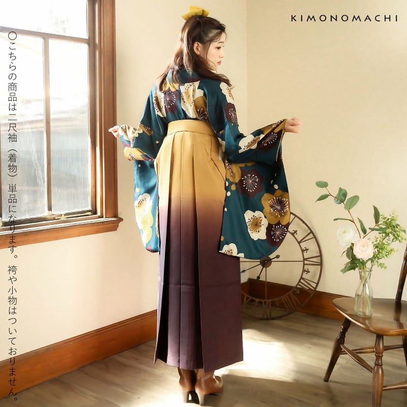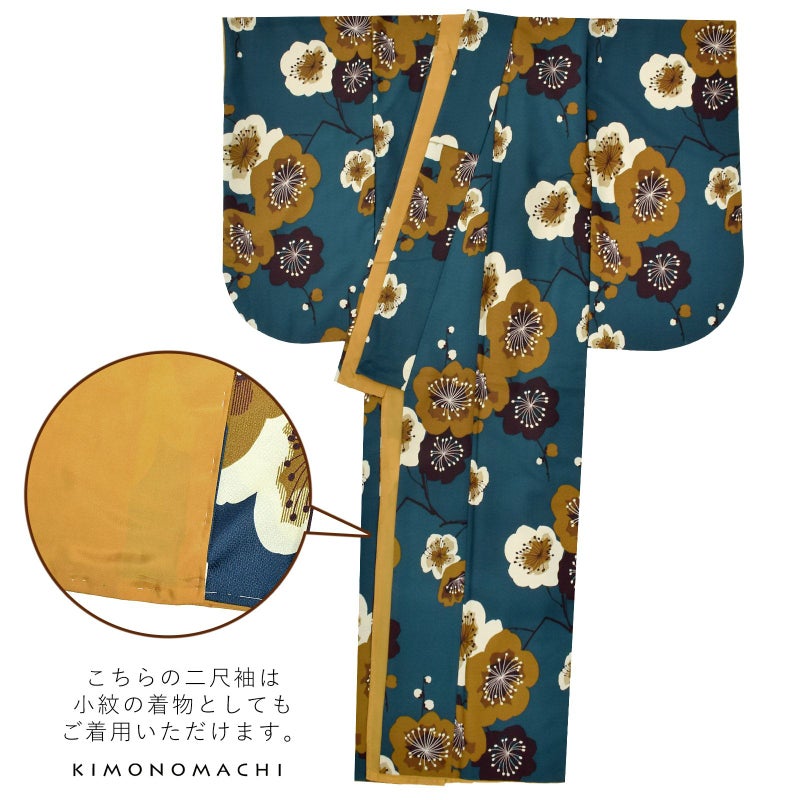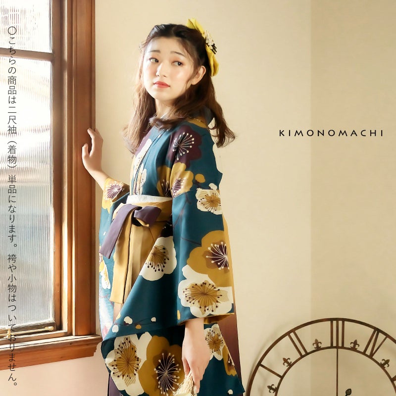 京都きもの町オリジナルブランド「KIMONOMACHI」の二尺袖着物単品です。袴と合わせて卒業式などの袴スタイルに。また身丈が通常の着物と同様の長さがございますので、袴無しで、袖が長めなアンティーク風着物としてもお召しいただけます。