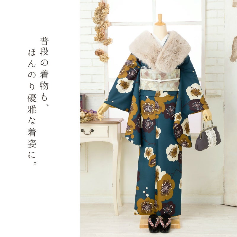 普段着着物として、長めの袖でアンティーク風な着こなしに。