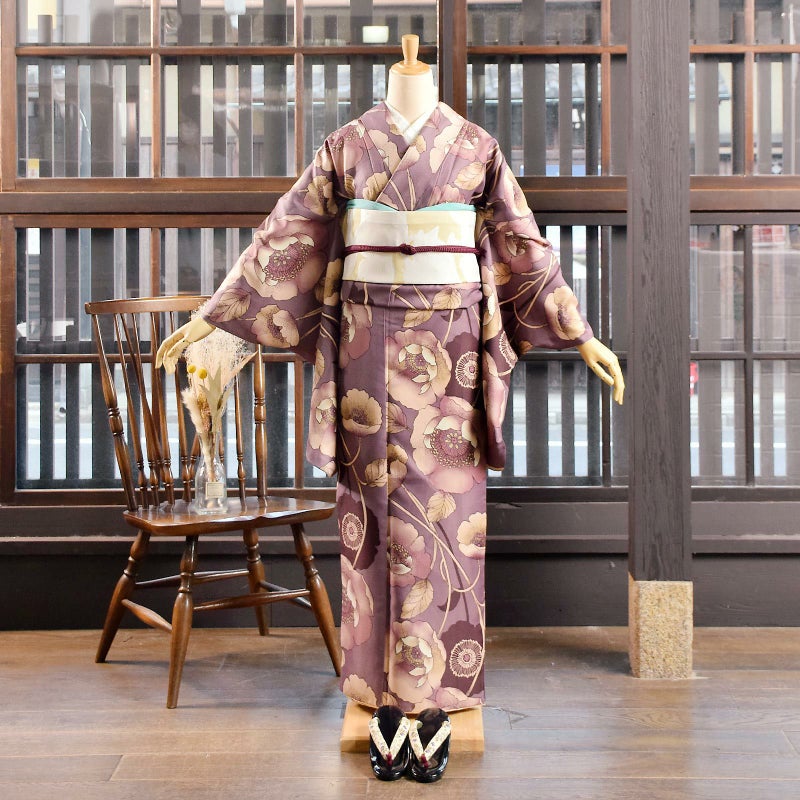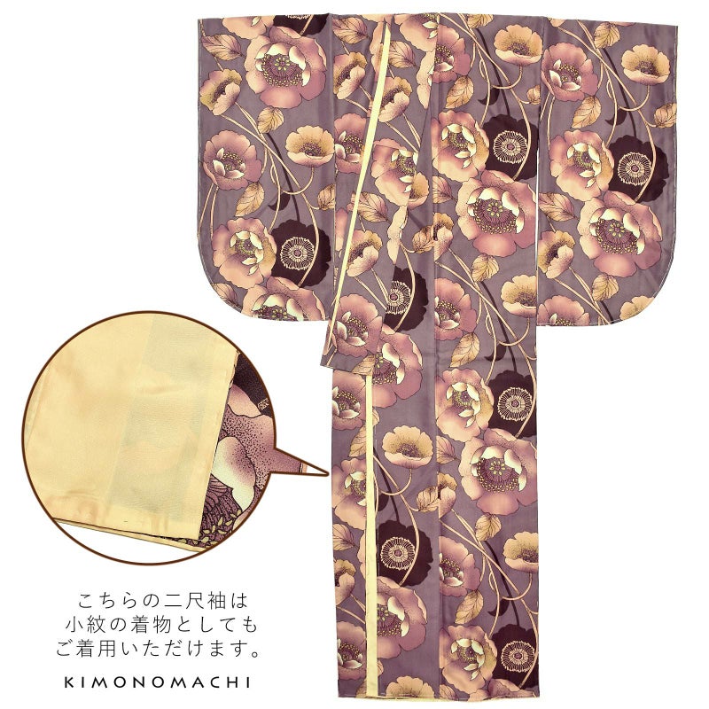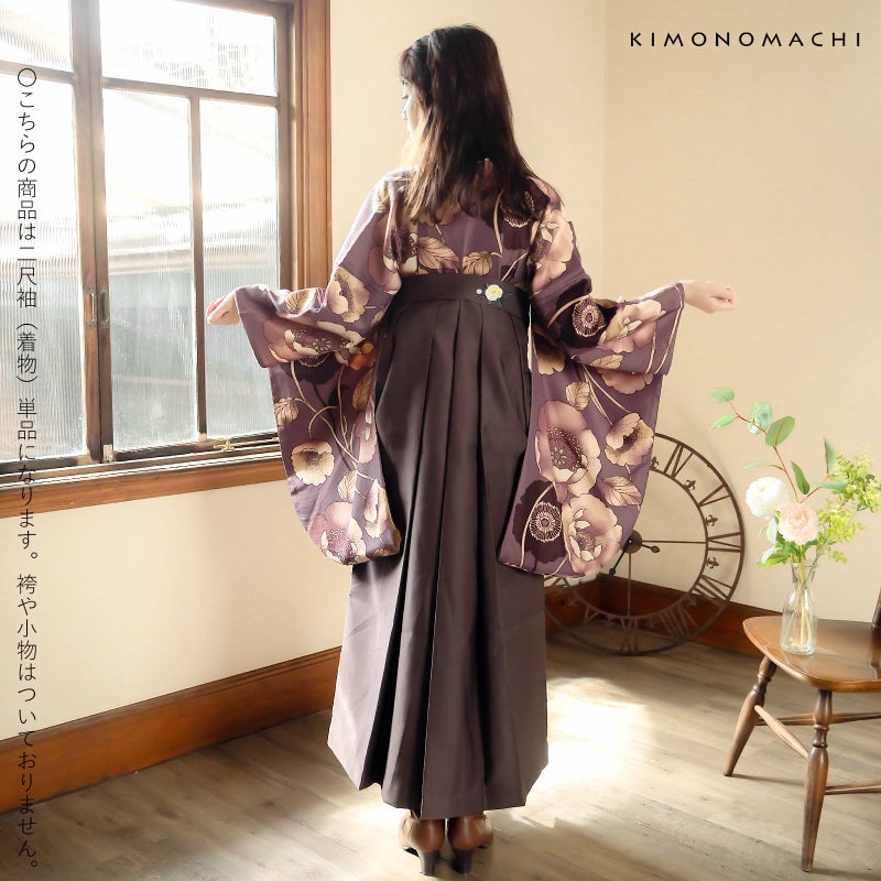 京都きもの町オリジナルブランド「KIMONOMACHI」の二尺袖着物単品です。袴と合わせて卒業式などの袴スタイルに。また身丈が通常の着物と同様の長さがございますので、袴無しで、袖が長めなアンティーク風着物としてもお召しいただけます。