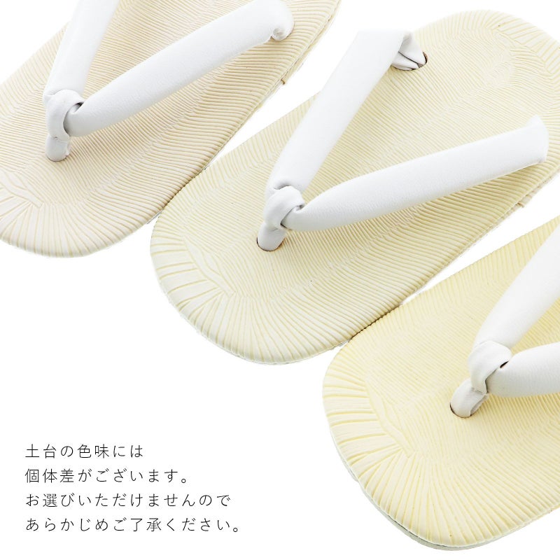 七五三のお参りや結婚式・卒園式・卒業式などお祝い事の和装に使われる、定番の白い台に白い鼻緒の子供用雪駄です。
