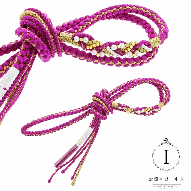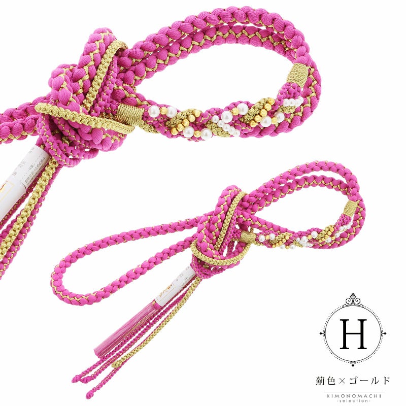華やかな丸組に、ビーズ飾りがついた華やかな帯締めです。
