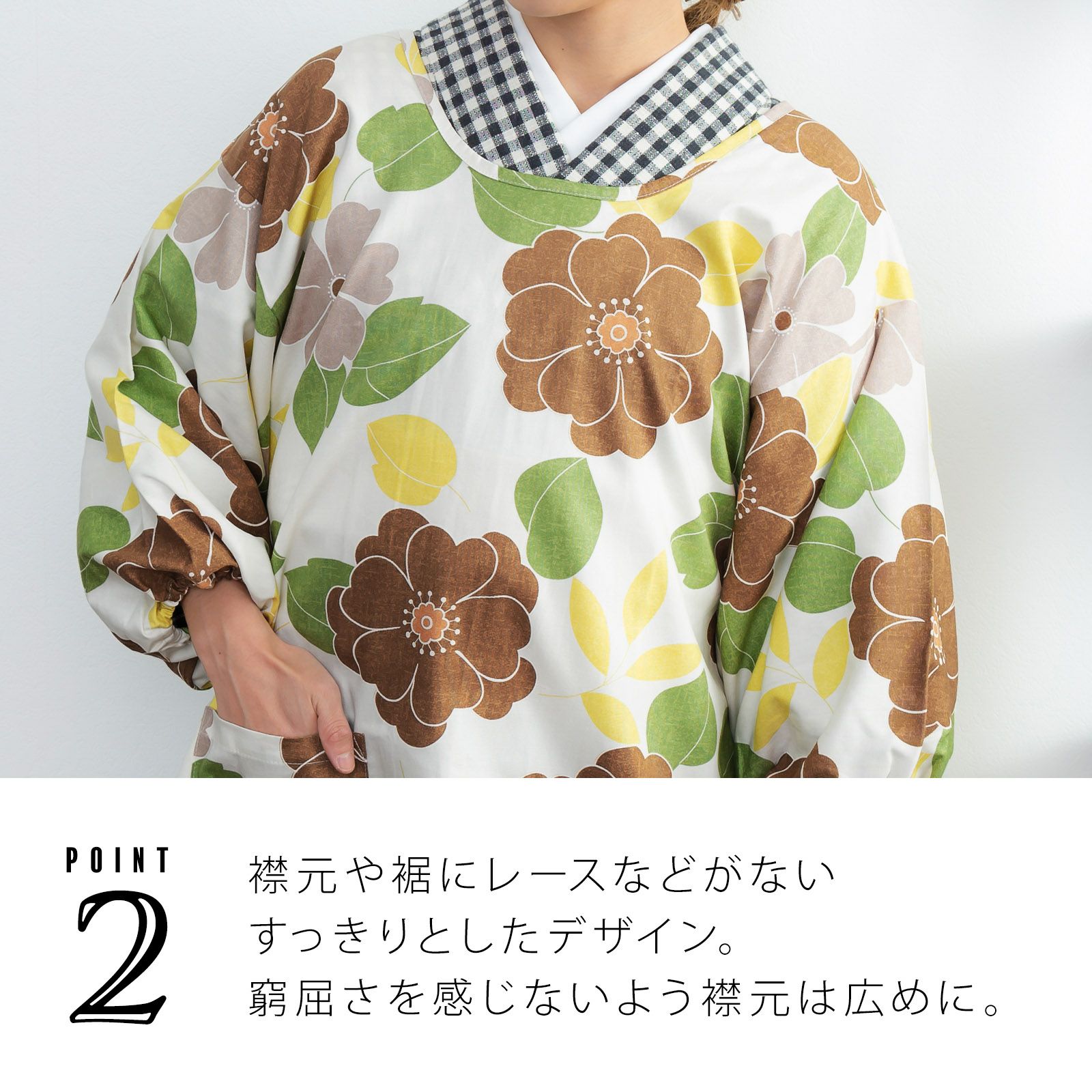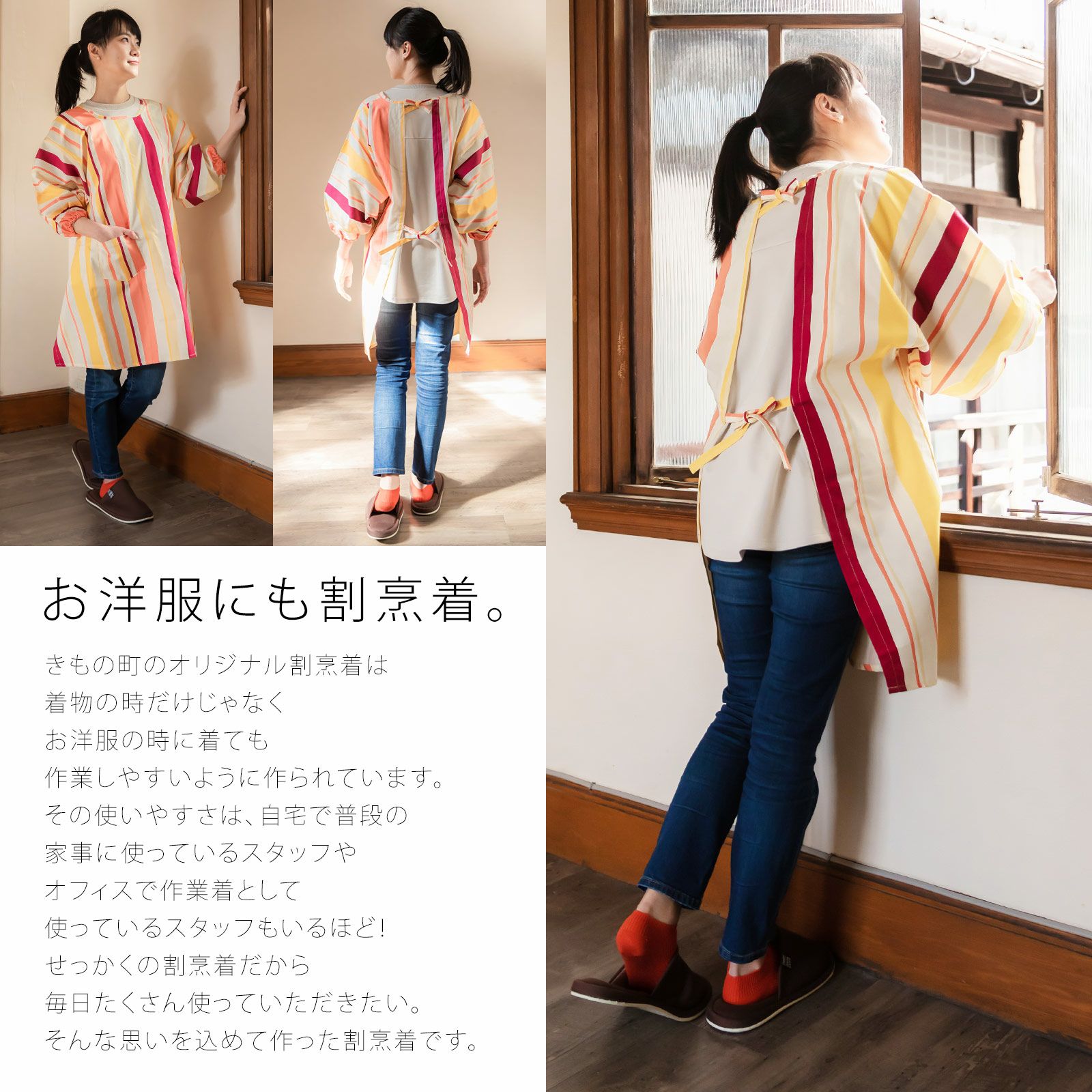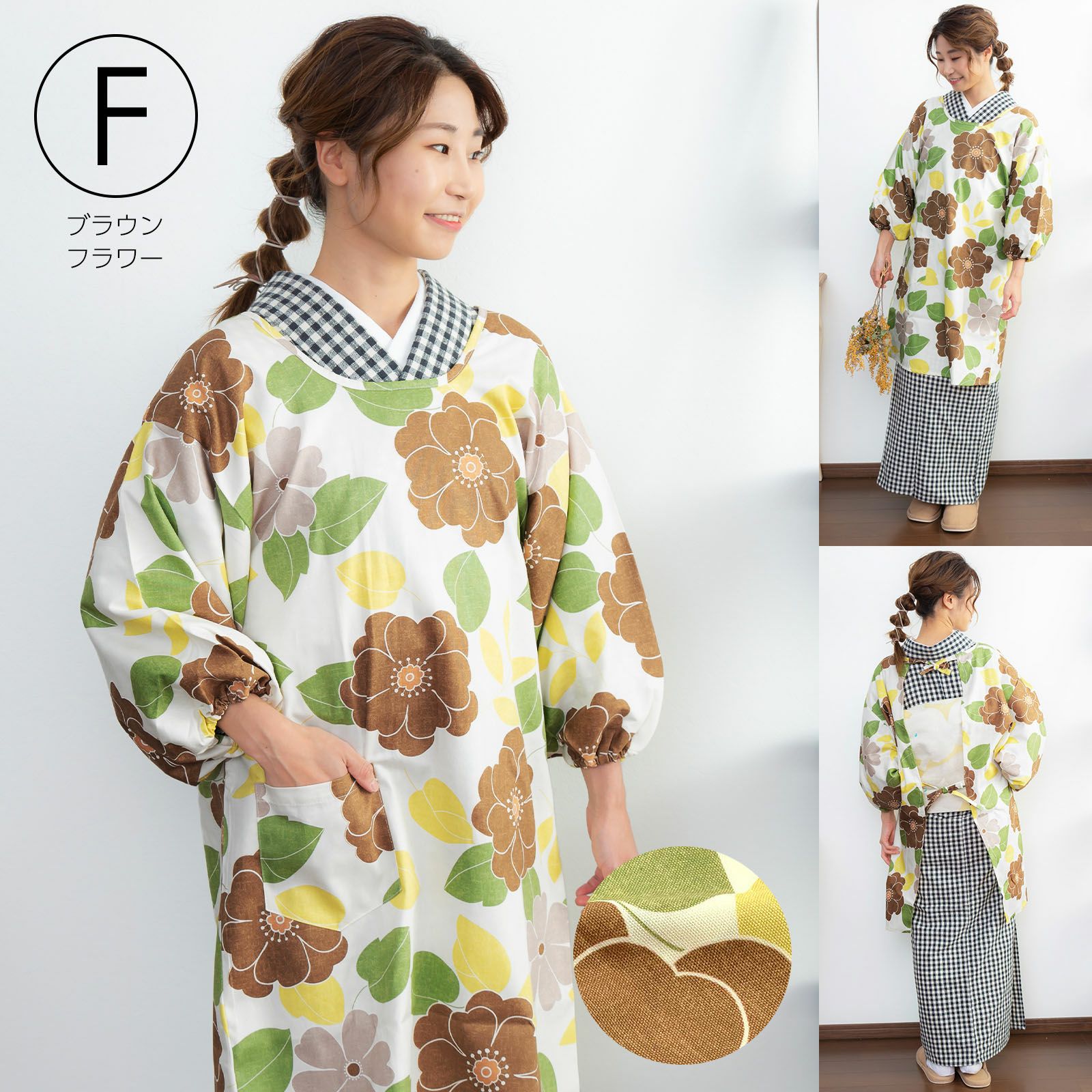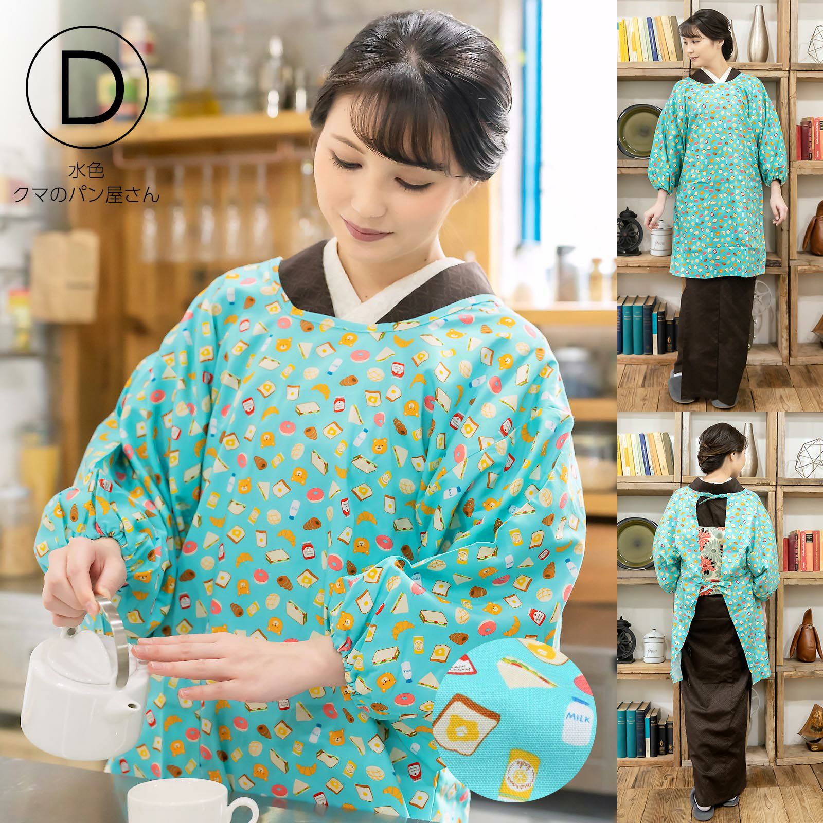家事や料理など作業時の汚れ防止に、着物だけでなく普段着の洋服にも合わせていただけます。