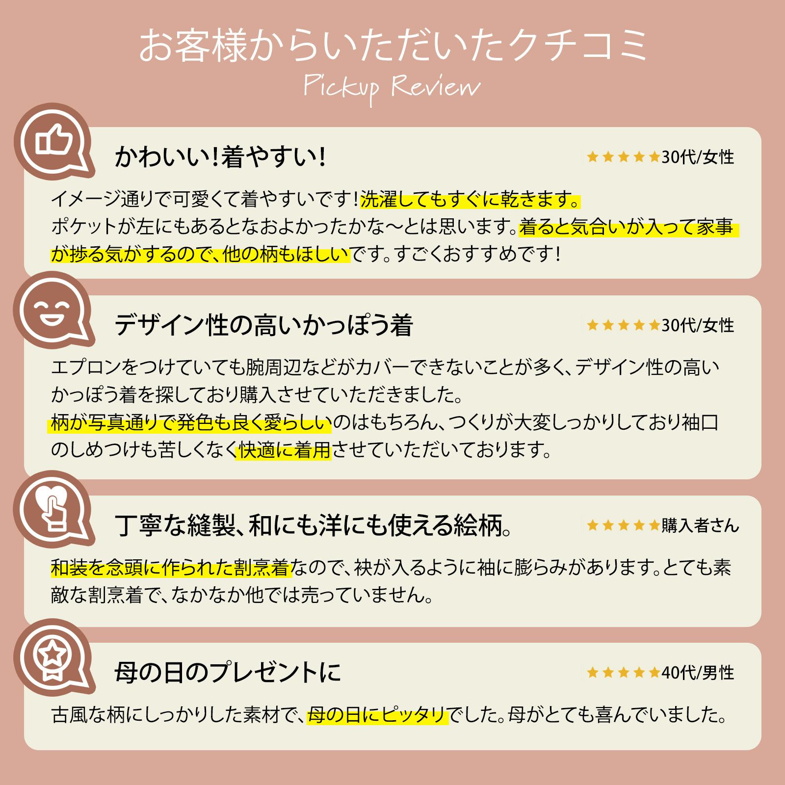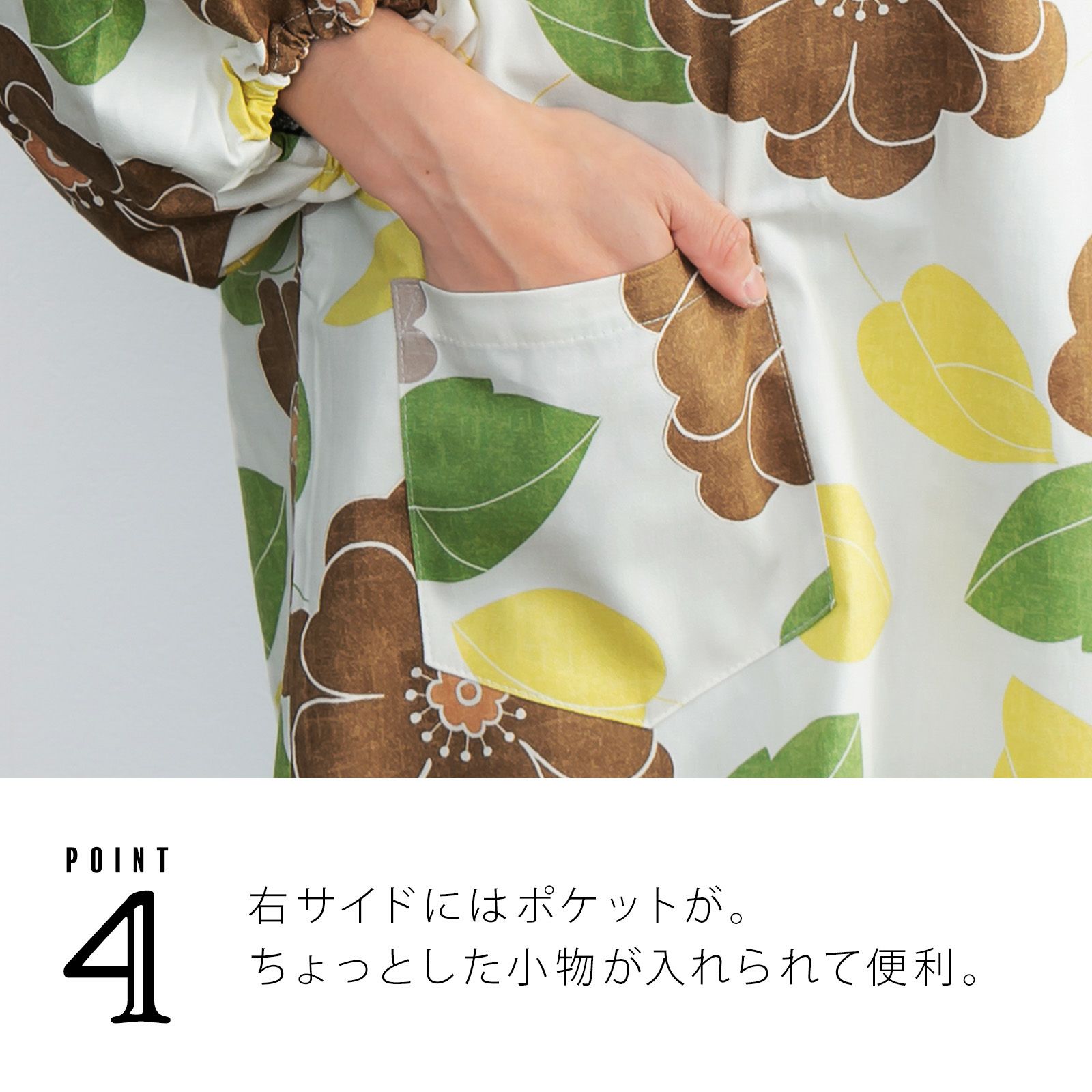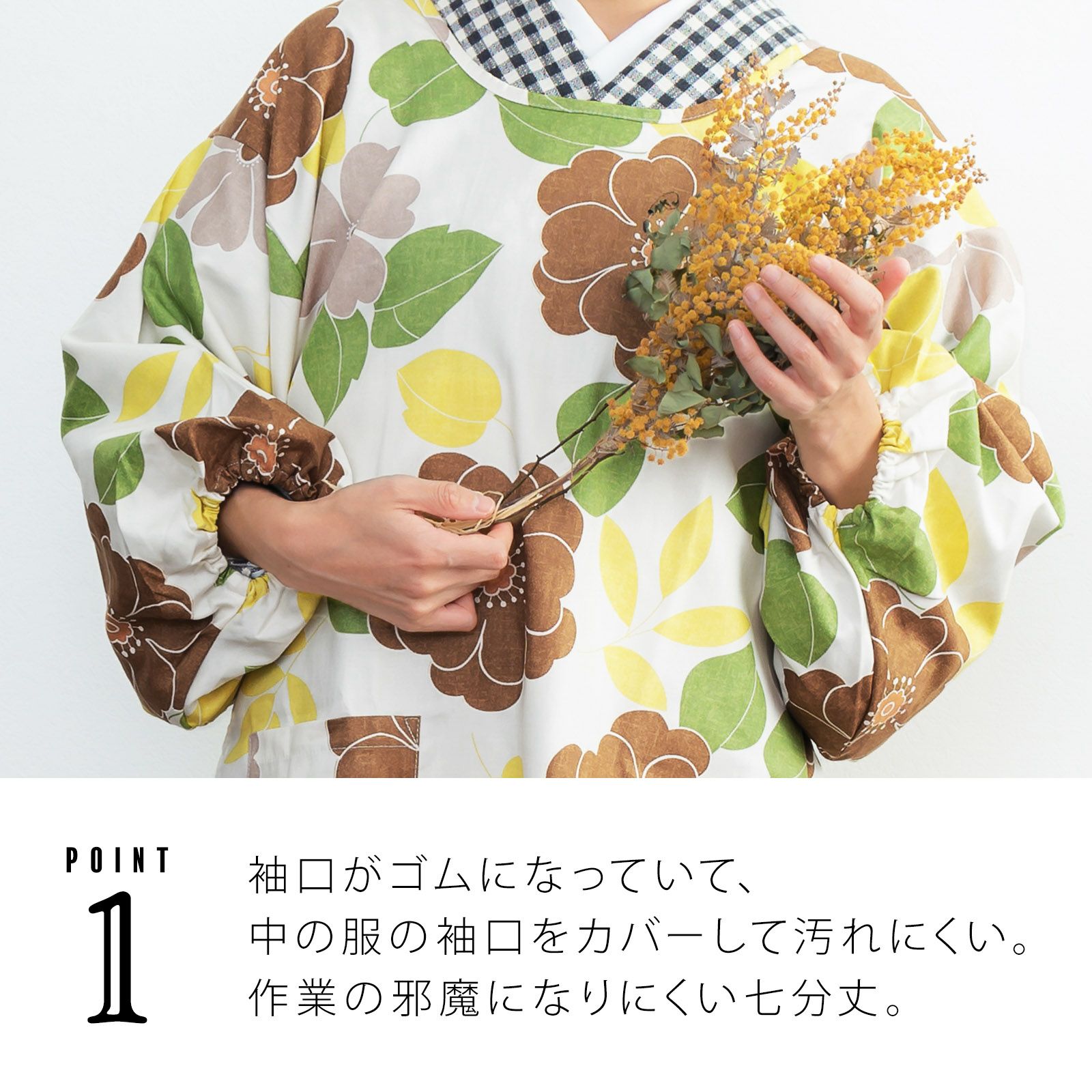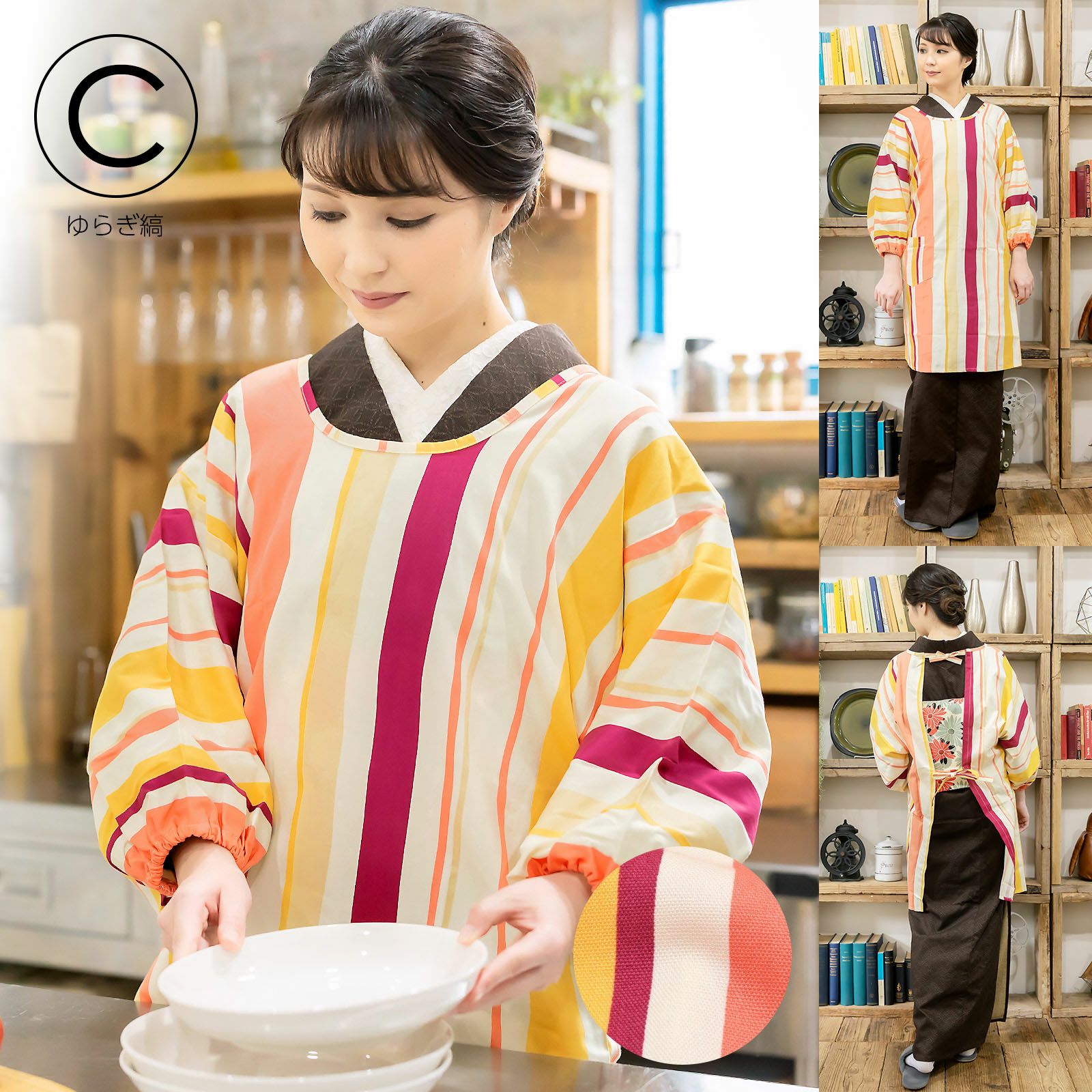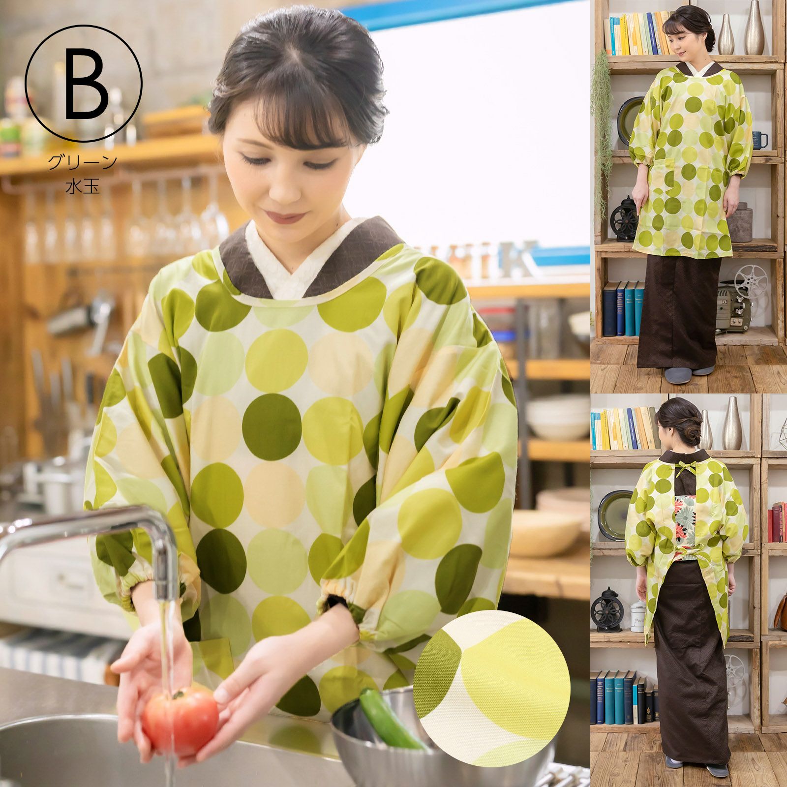 家事や料理など作業時の汚れ防止に、着物だけでなく普段着の洋服にも合わせていただけます。
