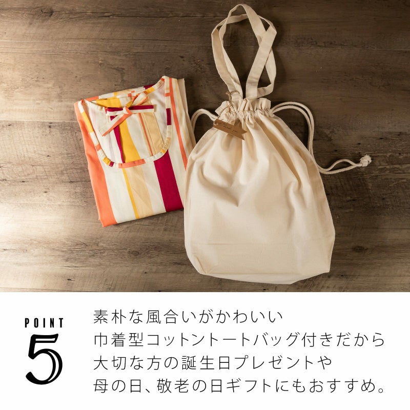 かわいい色柄が自慢の日本製割烹着に、トートバッグがついたギフトセット