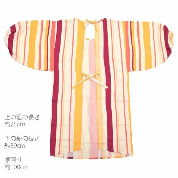 後ろの首元と腰部分の二か所の紐で身幅を自由に調節できます。