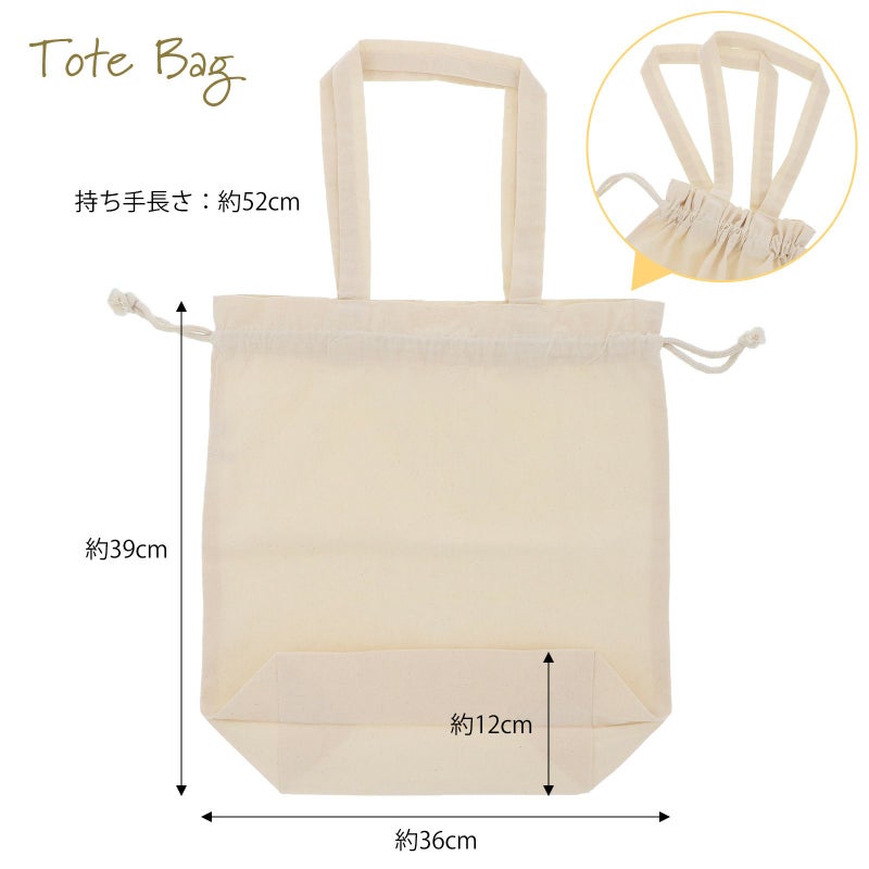 トートバッグ:縦約39cm/横約36cm/マチ約12cm/持ち手長さ約52cm