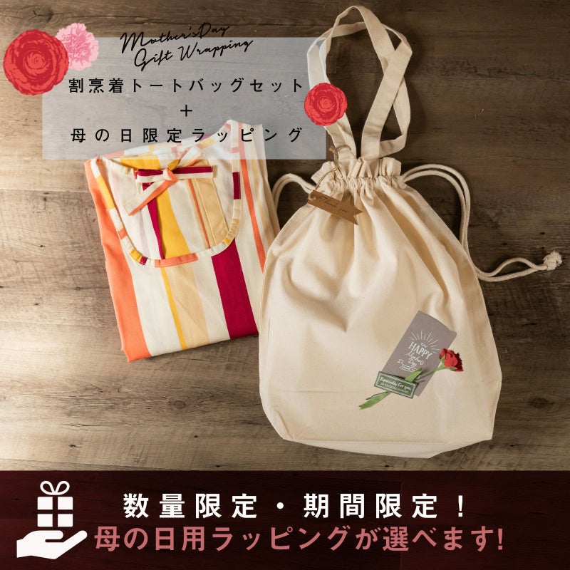 京都きもの町オリジナルの割烹着に、プレゼントに最適なタグつきトートバッグのセットが登場!