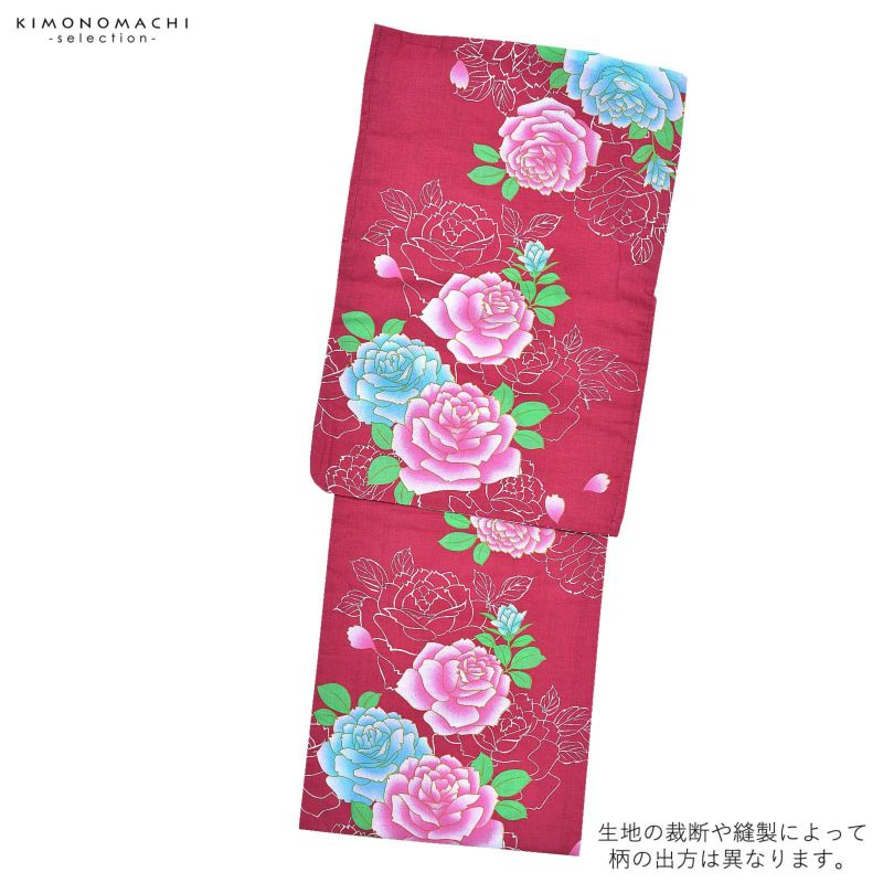 浴衣 レディース 単品 「風香 赤 ピンク、水色の薔薇」 フリーサイズ yukata 【メール便不可】