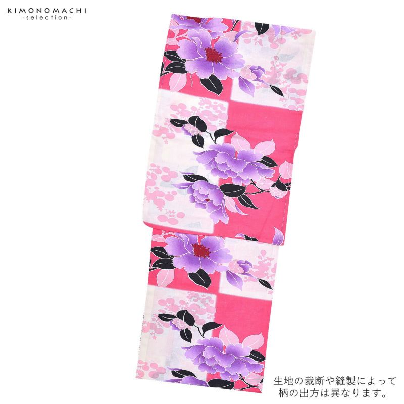 浴衣 レディース 単品 「風香 白×ピンク市松 花」 フリーサイズ yukata 【メール便不可】