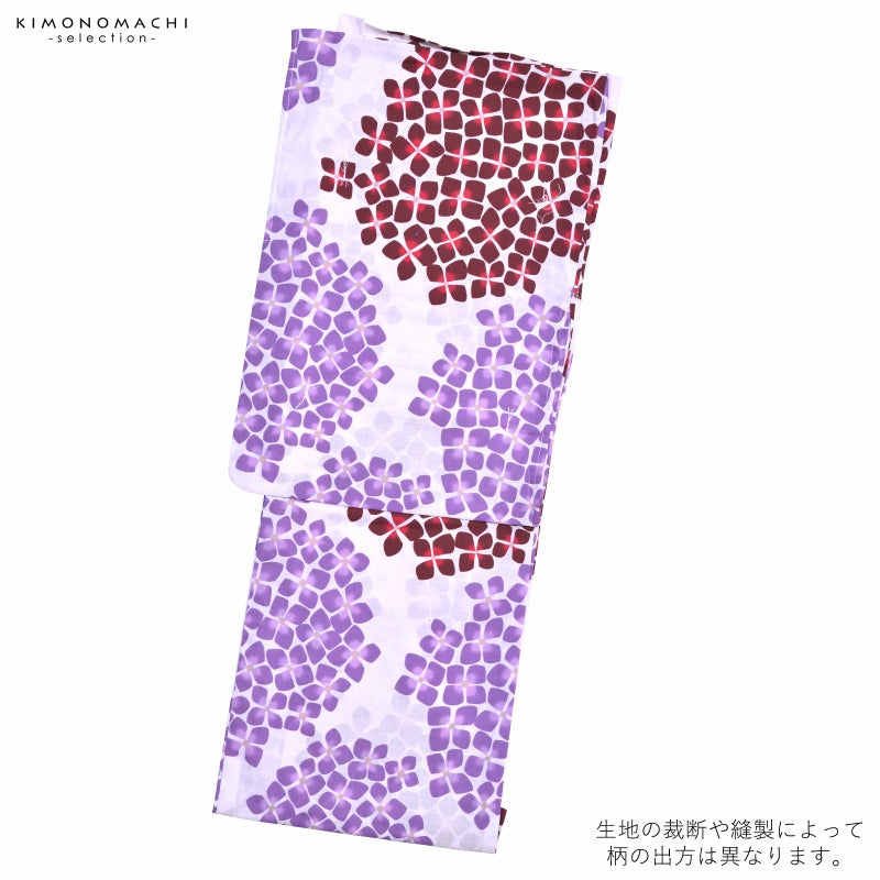 浴衣 レディース 単品 「薄ピンク地 紫×赤の紫陽花」 F フリーサイズ yukata