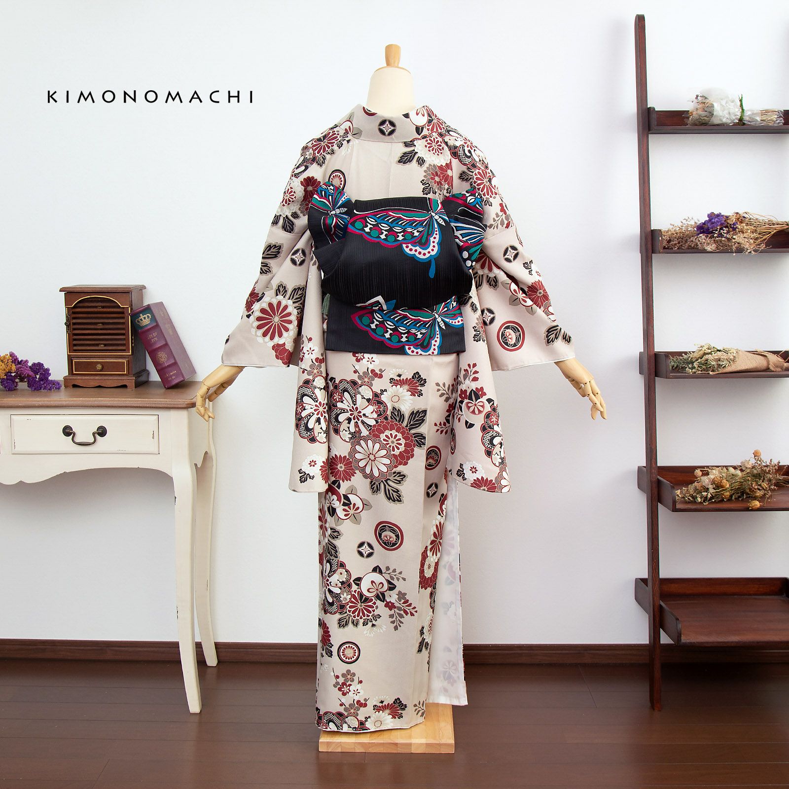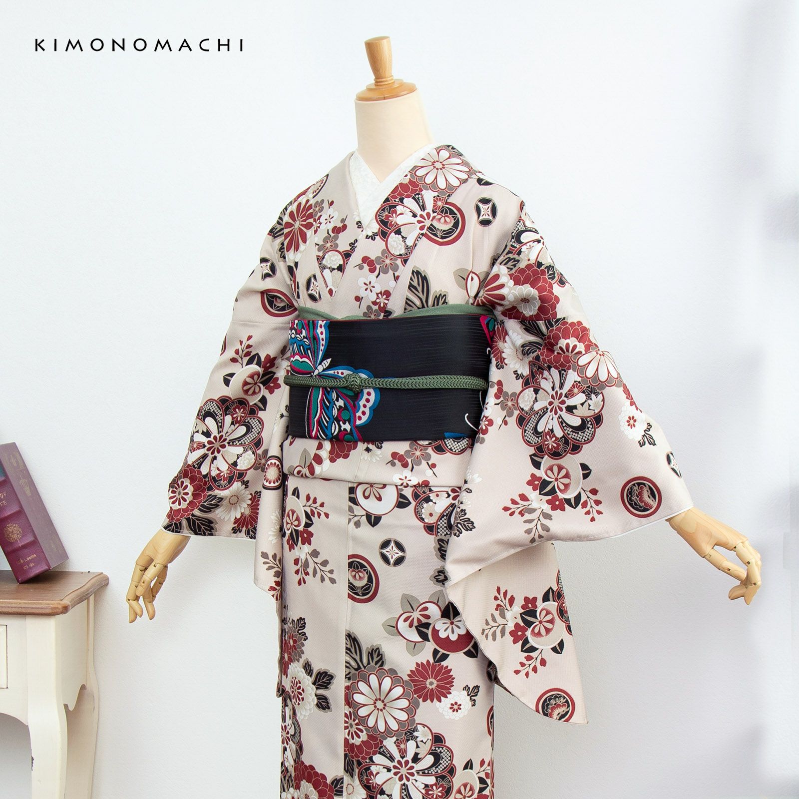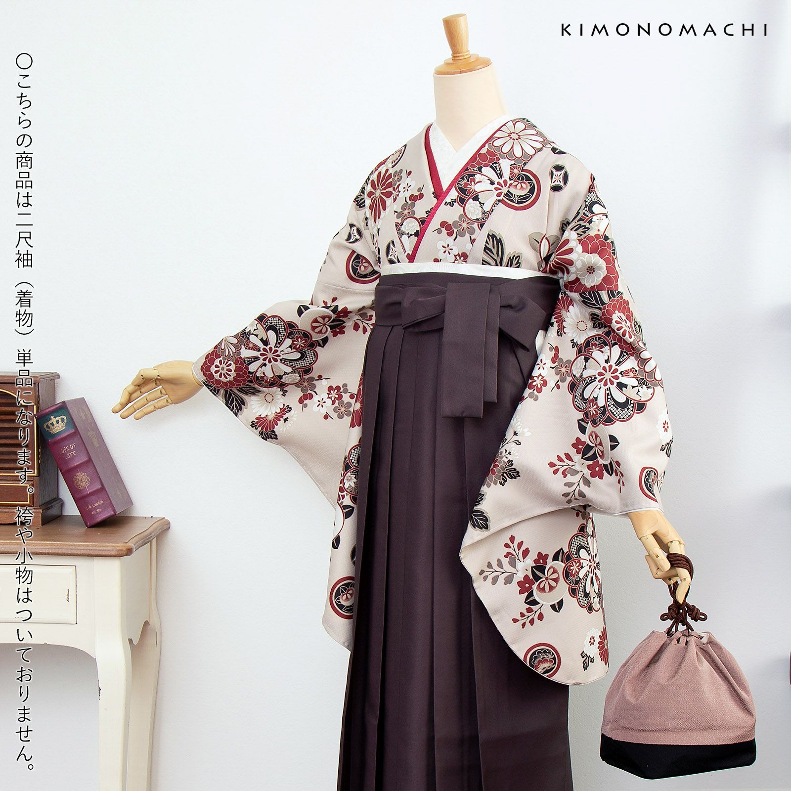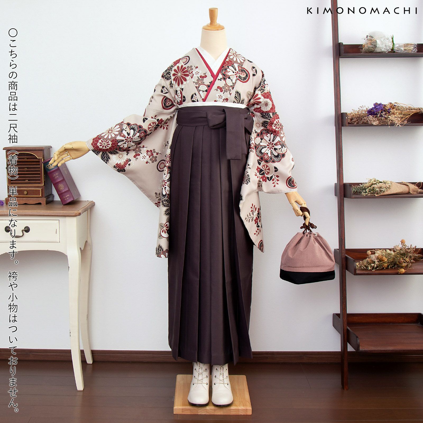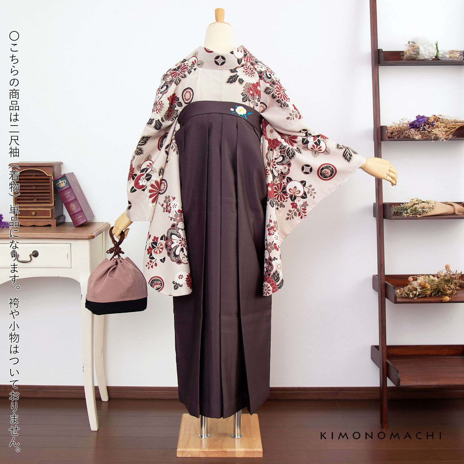 京都きもの町オリジナルブランド「KIMONOMACHI」の二尺袖着物単品です。袴と合わせて卒業式などの袴スタイルに。また身丈が通常の着物と同様の長さがございますので、袴無しで、袖が長めなアンティーク風着物としてもお召しいただけます。