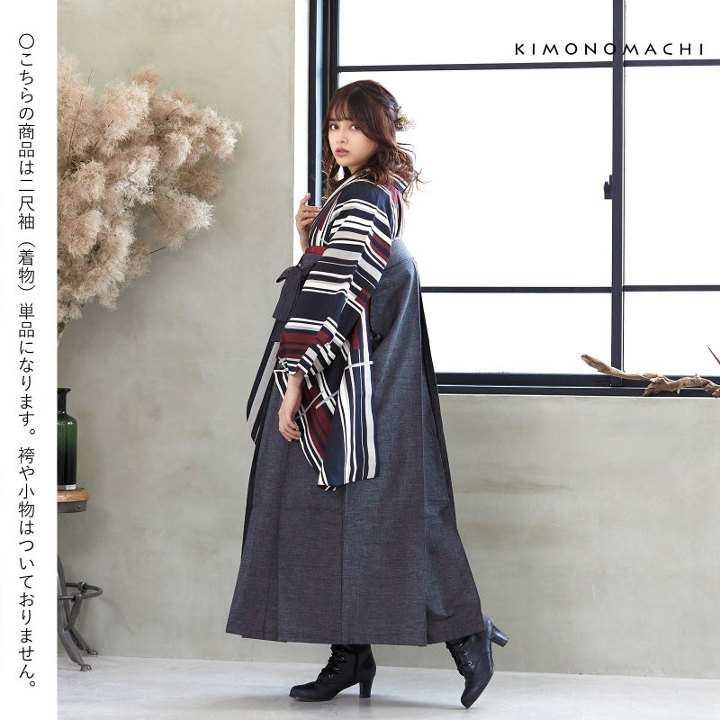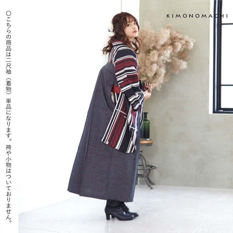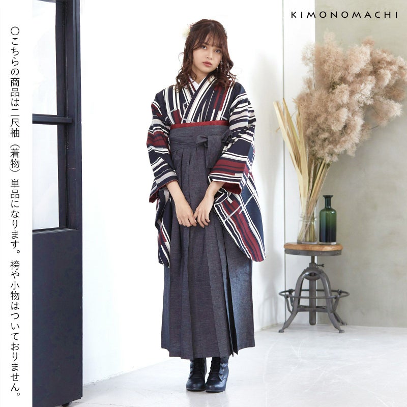 京都きもの町オリジナルブランド「KIMONOMACHI」の二尺袖着物単品です。袴と合わせて卒業式などの袴スタイルに。また身丈が通常の着物と同様の長さがございますので、袴無しで、袖が長めなアンティーク風着物としてもお召しいただけます。