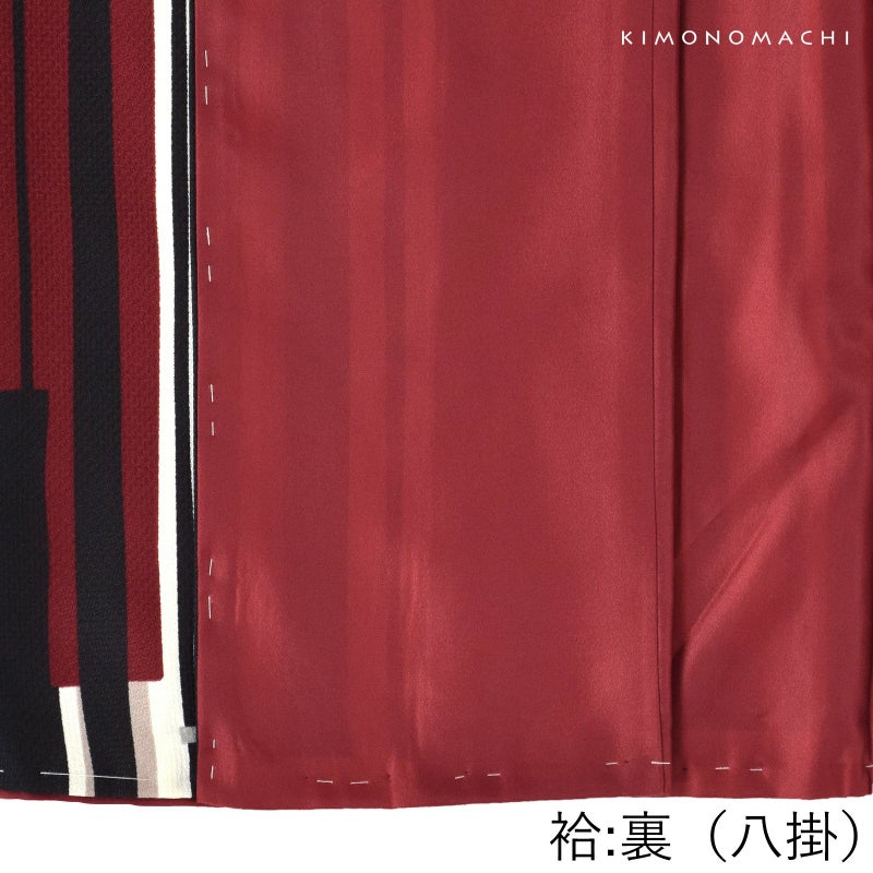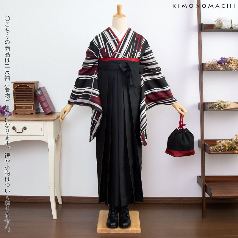 二尺袖着物 単品 「ラインカラー 灰色×赤」 KIMONOMACHIオリジナル お仕立て上がり レディース 洗える着物 二尺袖 着物 袴に合わせて 卒業式 謝恩会に 通常丈 長着 カジュアル着物 【メール便不可】