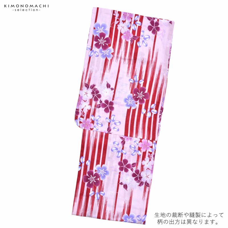 浴衣 レディース 単品 「ピンク地に桜 赤の矢絣」 F フリーサイズ yukata 【メール便不可】