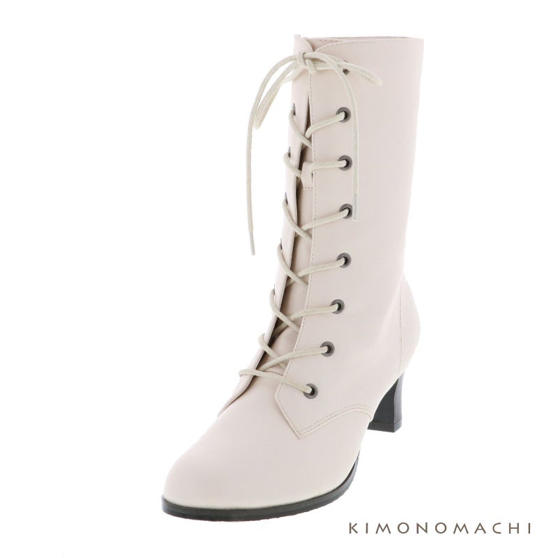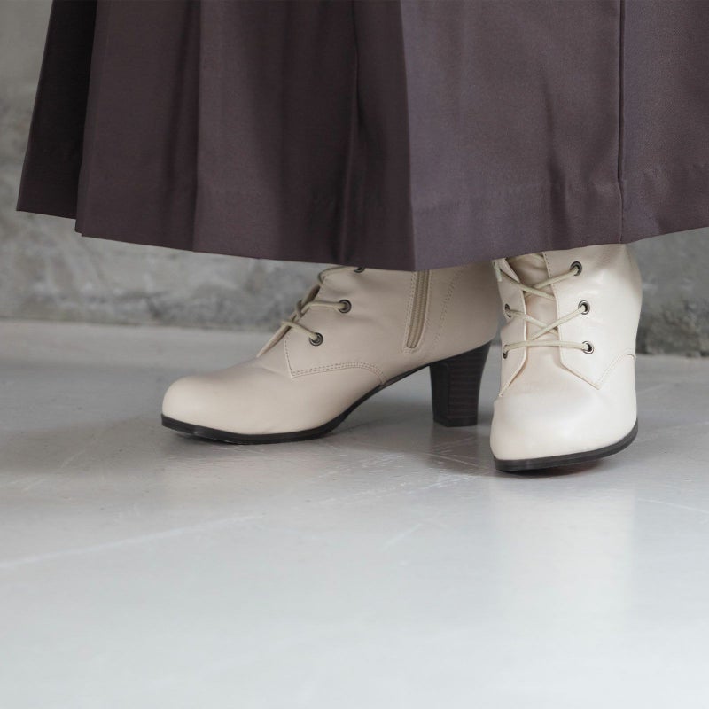 5. 袴 ブーツ アイボリー ホワイト 白 「卒業式の袴に履き心地良い袴ブーツ」S/M/L/LL/3L 小さいサイズから大きいサイズまで レースアップブーツ 卒業式 成人式 振袖 袴 22.0 22.5 23.0 23.5 24.0 24.5 25.0 26.0 やわらかい 履きやすい 痛くない 歩きやすい【メール便不可】