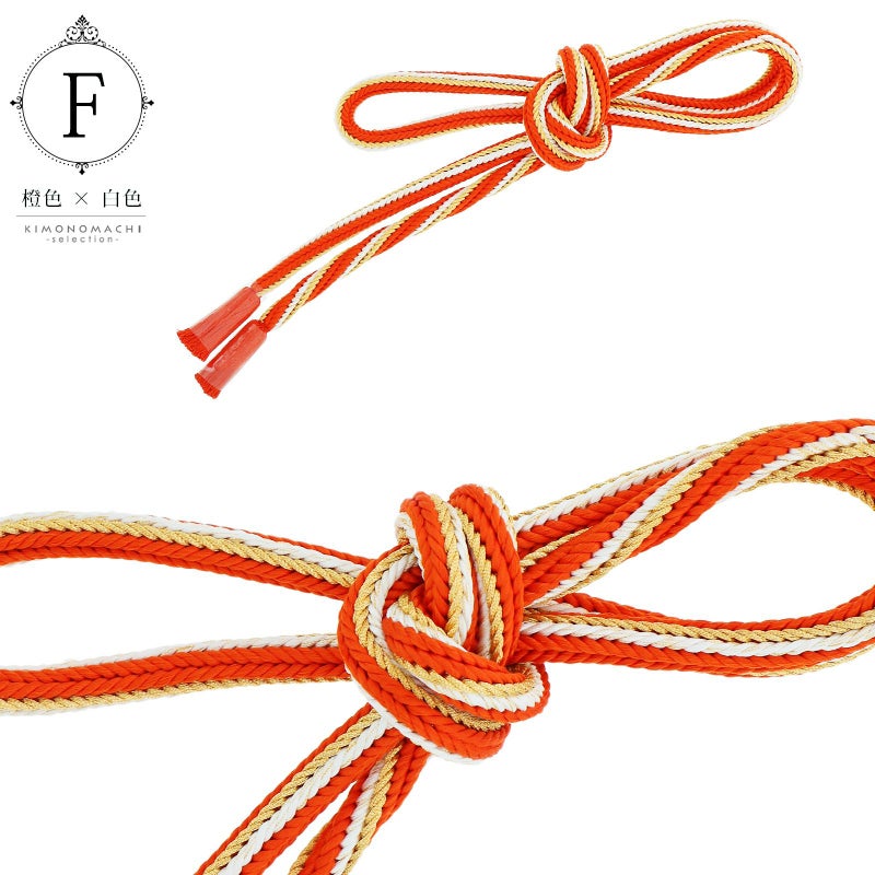 F.橙色×白色…あざやかな橙色をメインに、白、ゴールドが斜めにより合されたデザインの帯締めです。