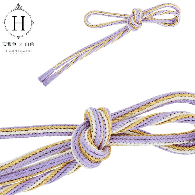 H.薄紫色×白色…淡い紫色をメインに、白、ゴールドが斜めにより合されたデザインの帯締めです。