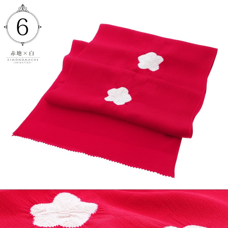 6.赤地×白…くっきりとした赤に織りで表現された市松の地模様。白の絞りの梅の花。