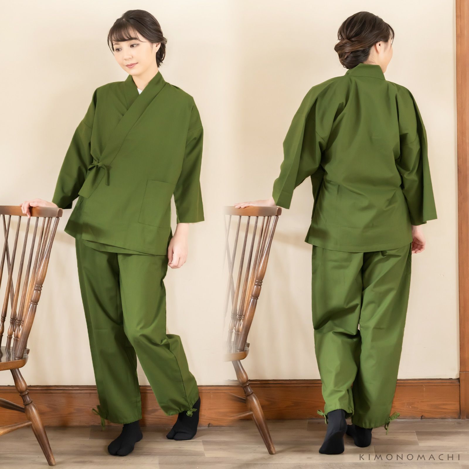 綿ポリ素材の作務衣です。上着、ズボンの上下に分かれています。
