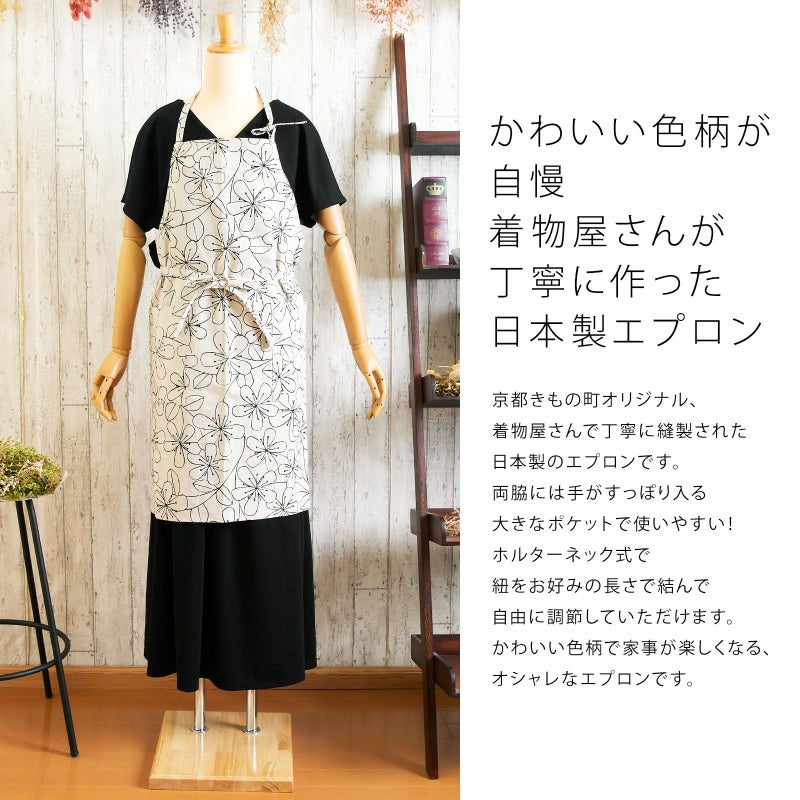 丁寧に作られた日本製の「京都きもの町」オリジナルのエプロンです。