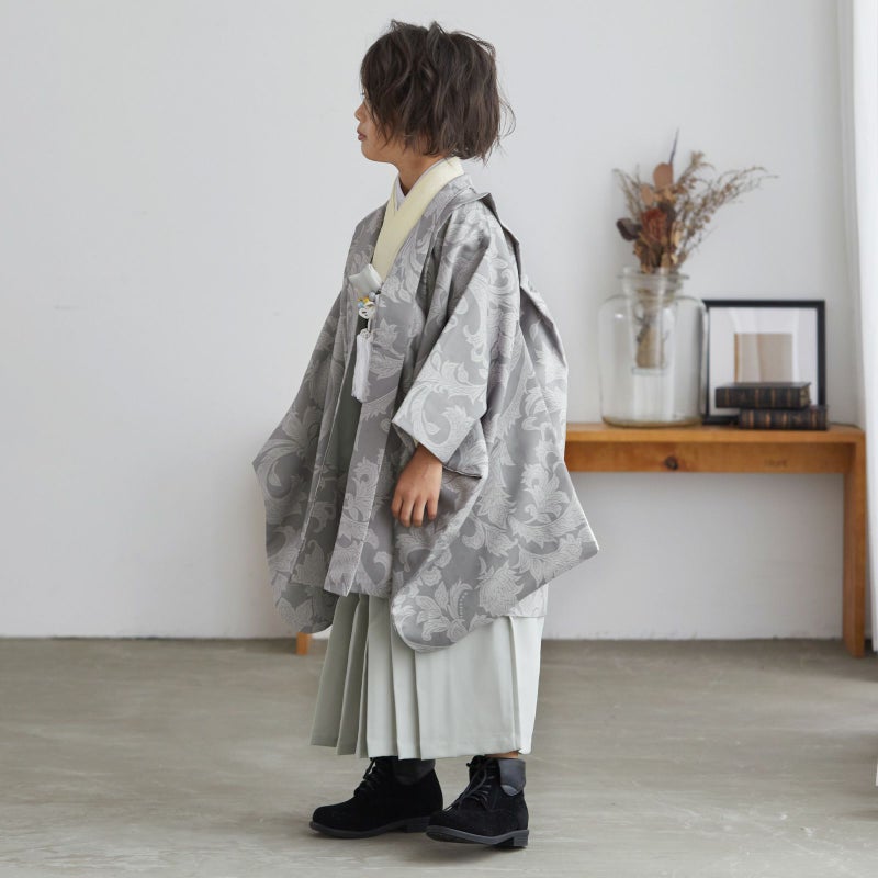 七五三 着物 男の子 3歳~5歳 ブランド羽織袴セット petite liberte プチリベルテ「唐草グレー クリーム アイスグレー」小柄な五歳 大きな三歳向け 対応身長105cm~115cm前後 着物セット 男児用 3才~5才 着物セット 子供着物 五才のお祝い着 3歳~5歳【送料無料】