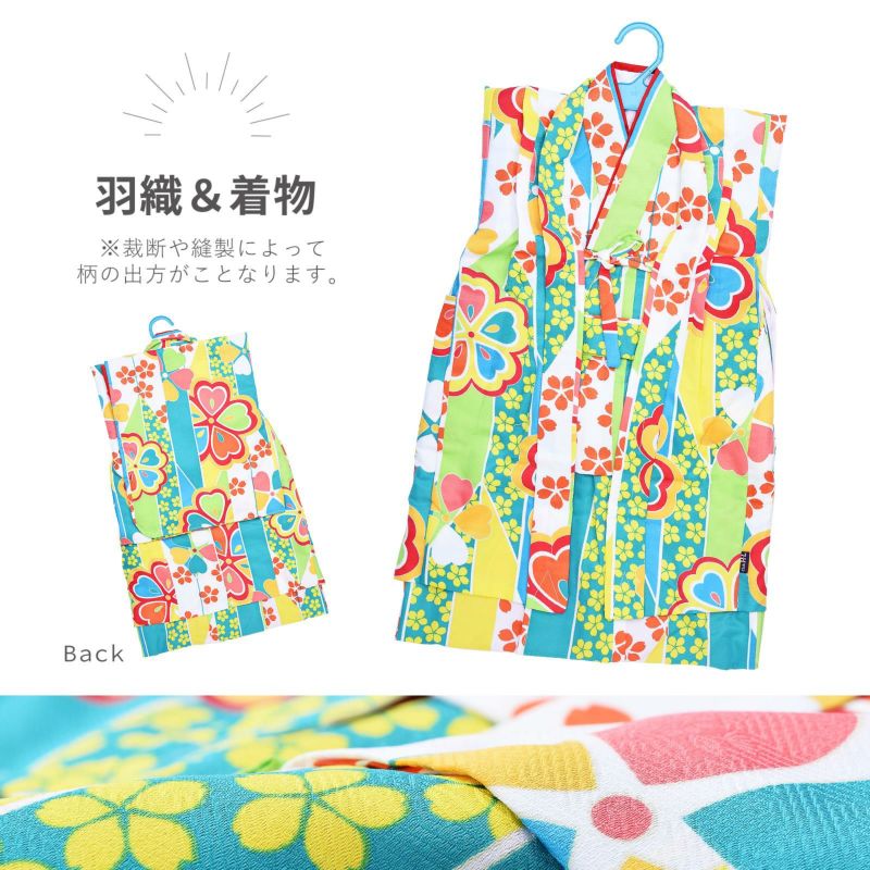 女の子 着物セット 「黄緑×水色 桜」 アンサンブル 着物、兵児帯、羽織、草履、巾着 3歳~4歳 5歳~6歳 7歳~8歳 9歳~10歳 こども 子ども キッズ ジュニア 子供 女児 着物 きもの