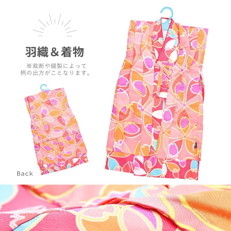 女の子 着物セット 「サーモンピンク×桃色 桜」 アンサンブル 着物、兵児帯、羽織、草履、巾着 3歳~4歳 5歳~6歳 7歳~8歳 9歳~10歳 こども 子ども キッズ ジュニア 子供 女児 着物 きもの
