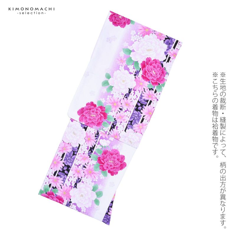 3. 【Prices down2】袷着物 単品 「紫ぼかし 牡丹とマーガレット」 フリーサイズ 着物 小紋 洗える着物 お仕立て上がり 普段着きもの カジュアル着物 レディース ポリエステル 【メール便不可】ss2512kck35