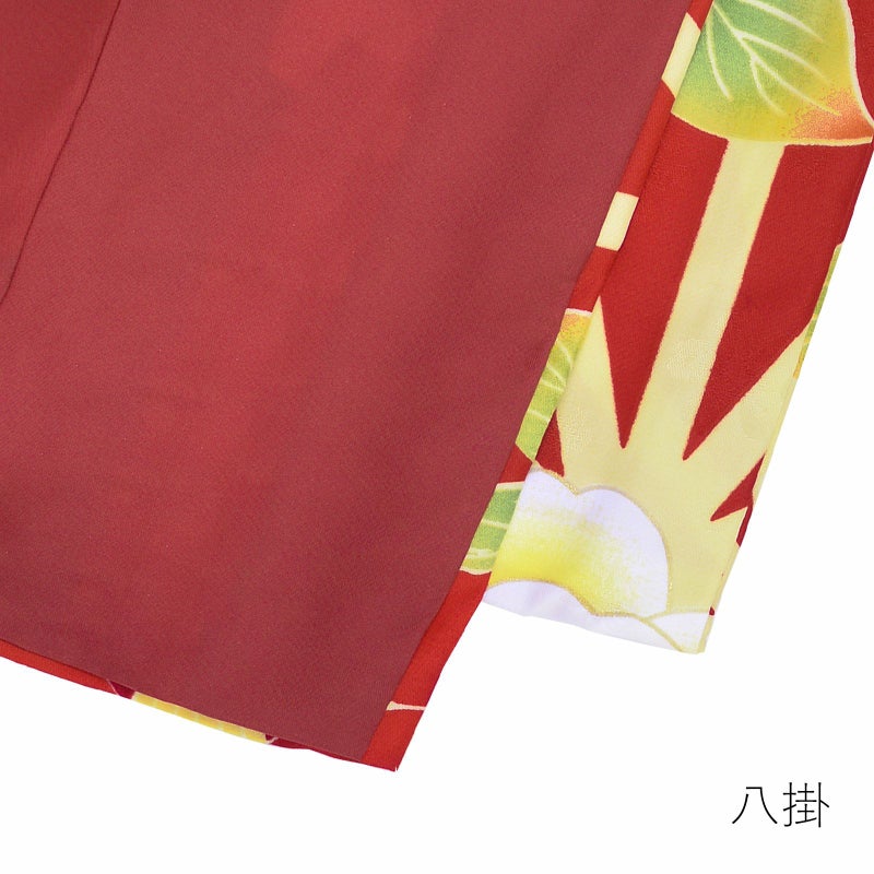 6. 【Prices down2】袷着物 単品 「赤×黄麻の葉 赤白椿」 フリーサイズ 着物 小紋 洗える着物 お仕立て上がり 普段着きもの カジュアル着物 レディース ポリエステル 【メール便不可】ss2603kck35