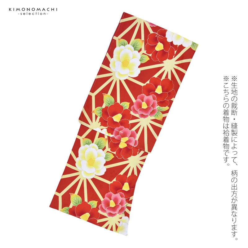 3. 【Prices down2】袷着物 単品 「赤×黄麻の葉 赤白椿」 フリーサイズ 着物 小紋 洗える着物 お仕立て上がり 普段着きもの カジュアル着物 レディース ポリエステル 【メール便不可】ss2603kck35