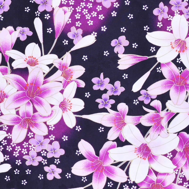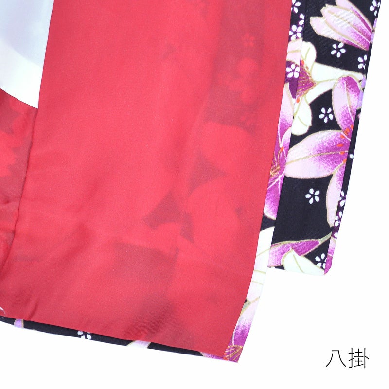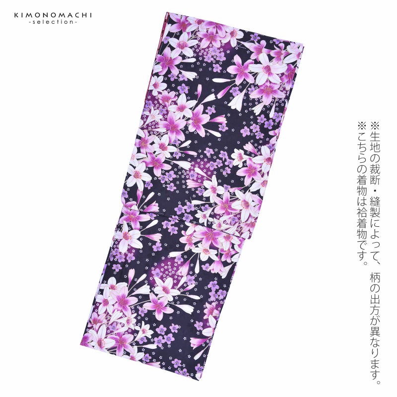 普段のお洒落着に お仕立て上がり洗える着物単品 【Prices down2】袷着物 単品 「黒 ピンクの百合と小白桜」 フリーサイズ 着物 小紋 洗える着物 お仕立て上がり 普段着きもの カジュアル着物 レディース ポリエステル 【メール便不可】ss2603kck35