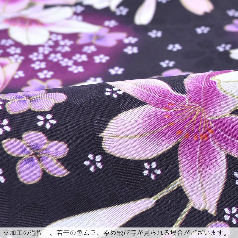 3. 【Prices down2】袷着物 単品 「黒 ピンクの百合と小白桜」 フリーサイズ 着物 小紋 洗える着物 お仕立て上がり 普段着きもの カジュアル着物 レディース ポリエステル 【メール便不可】ss2603kck35